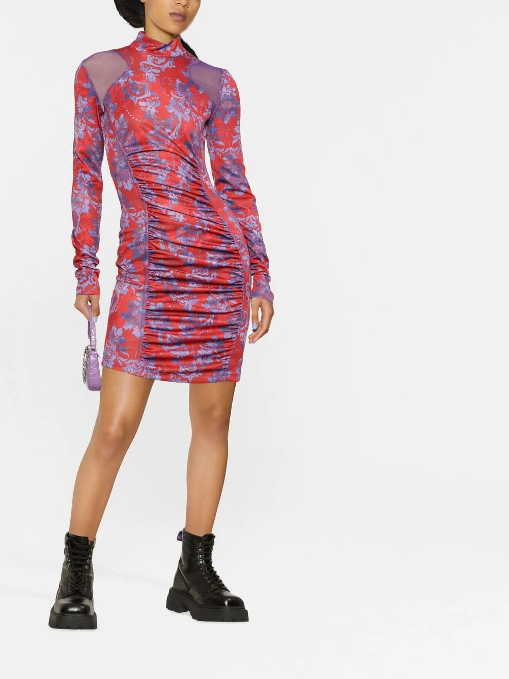 Платье мини с принтом пейсли и сборками Versace Jeans Couture, красный