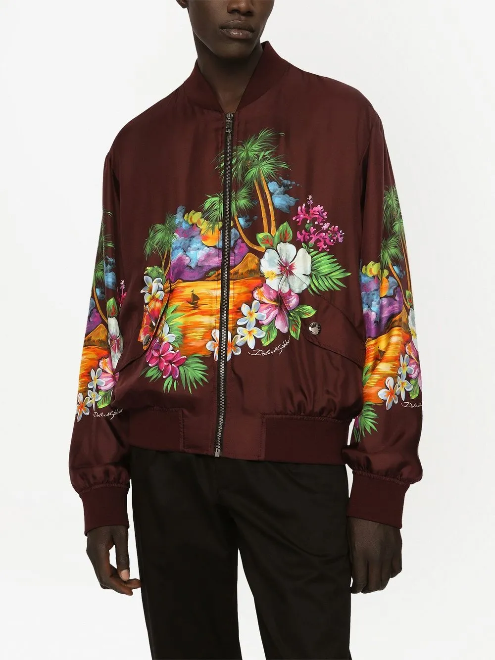 Шелковый бомбер с принтом DOLCE & GABBANA, красный