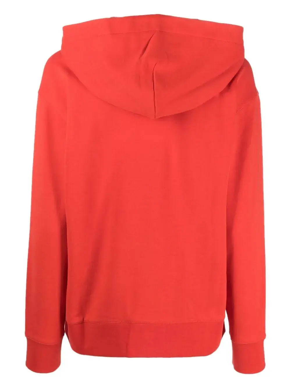 Красный, хлопок, классический капюшон, логотип спереди, длинные рукава, манжеты в рубчик и подол в рубчик.