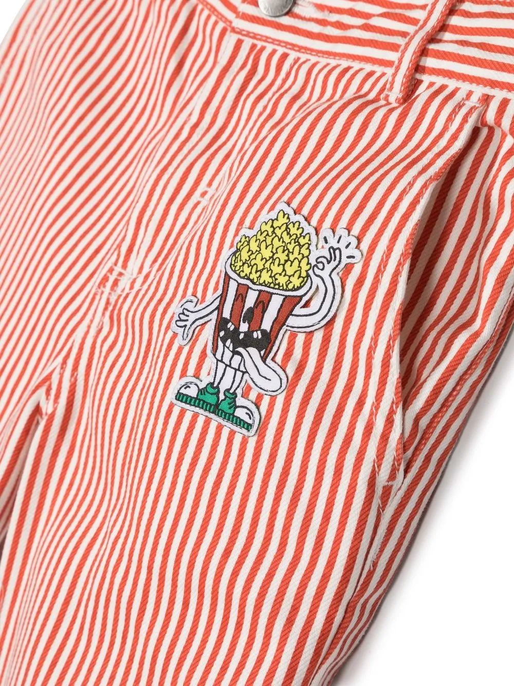 Красный, хлопок, узор в полоску, нашивка с логотипом сзади, нашивки с логотипом спереди, петли для ремня, ширинка на пуговицах, два кармана по бокам и два накладных кармана сзади. Узнать больше о том, какие товары получают отметку «Ответственный выбор», можно из материала «Как мы оцениваем экологичность и этичность».