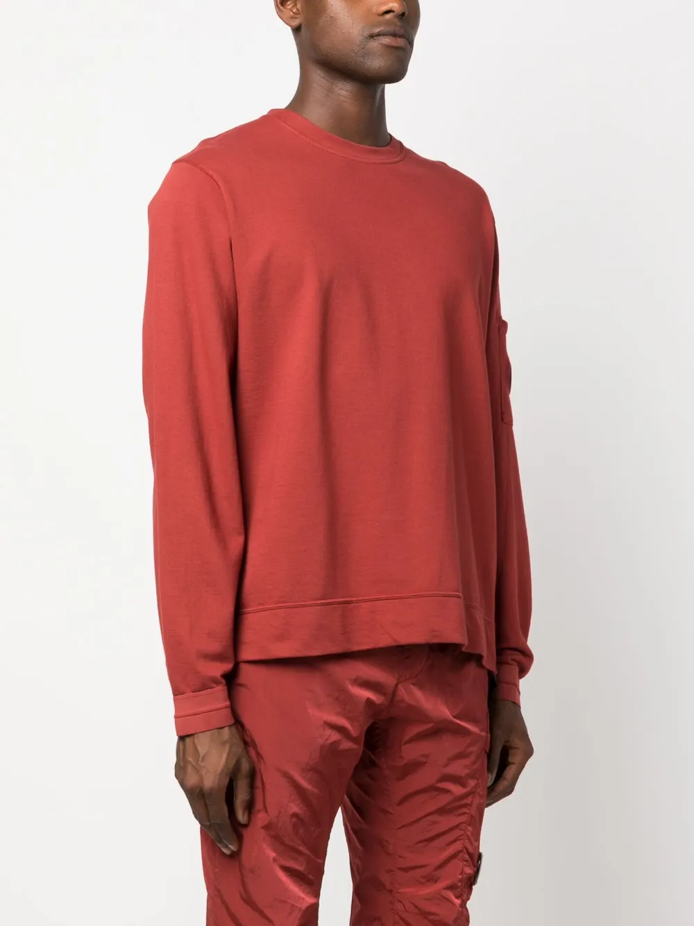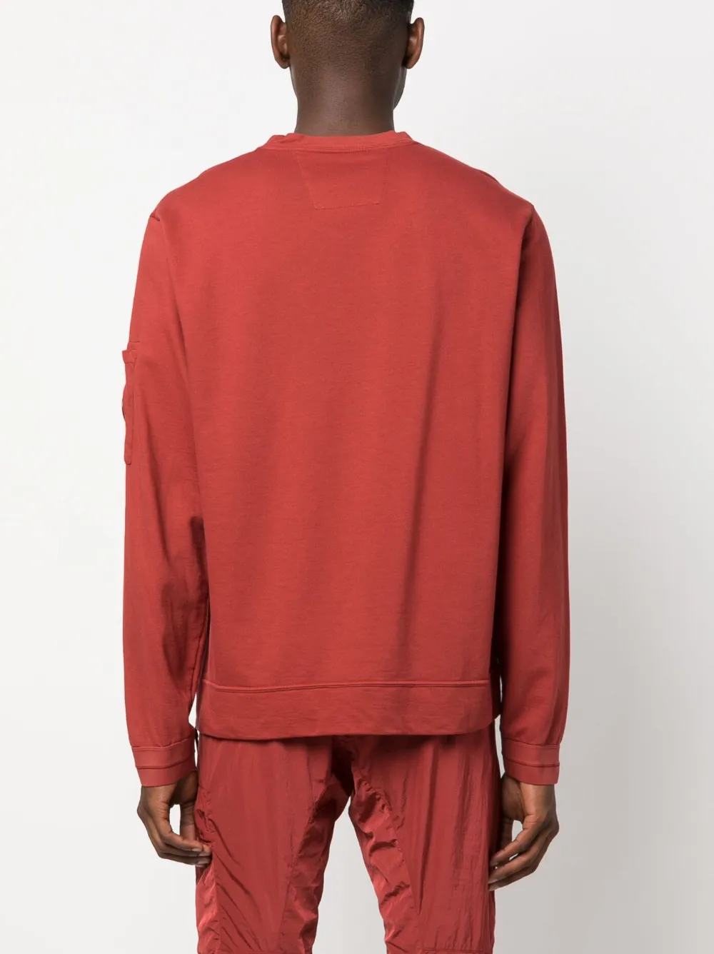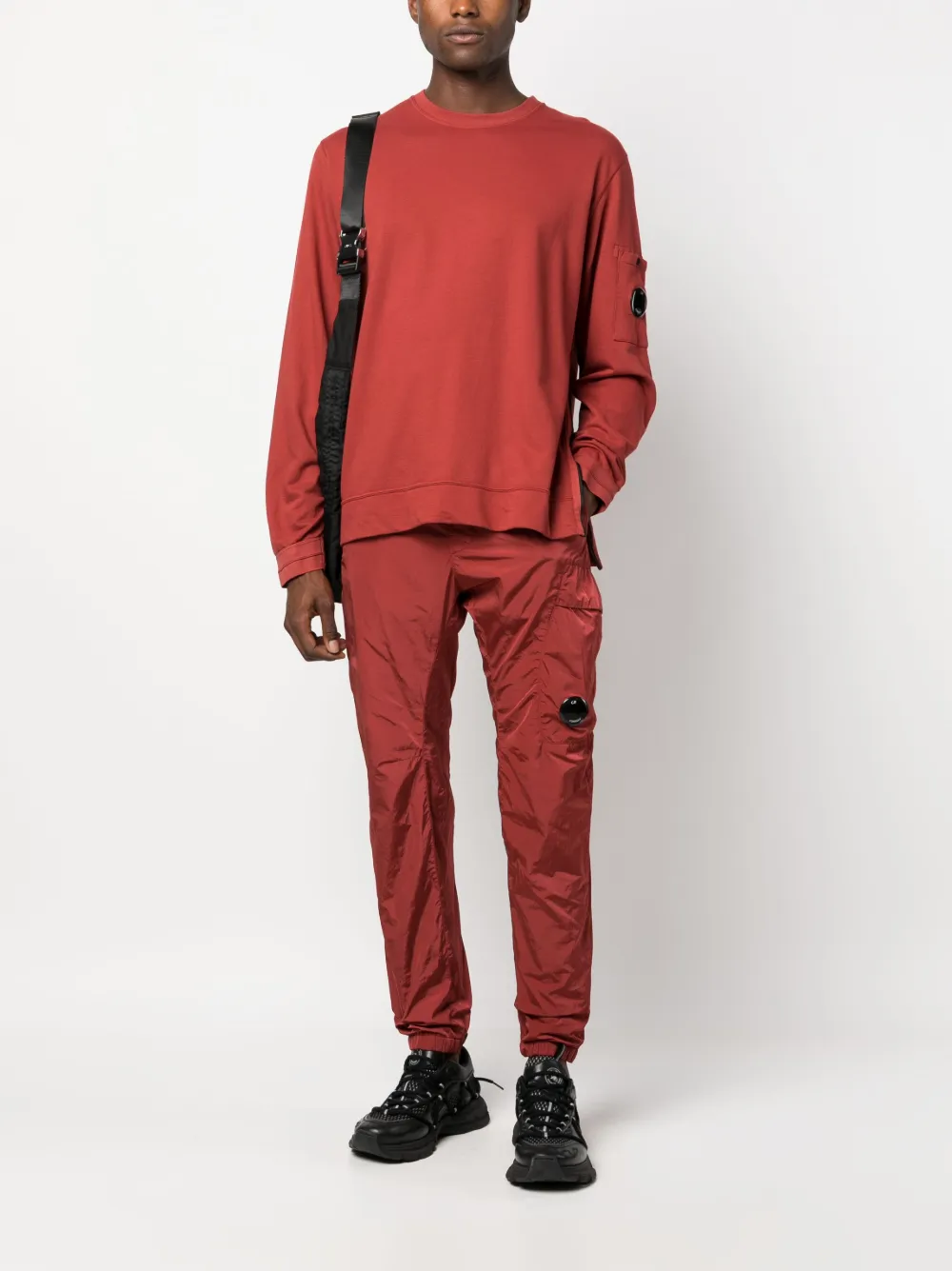 Красно-коричневый, хлопок, флисовый материал, декоративная линза, короткая застежка на молнии сбоку, круглый вырез, длинные рукава, застежка на кнопках и прямой подол. C.P. Company рекомендуют снимать все отстегивающиеся аксессуары перед стиркой.