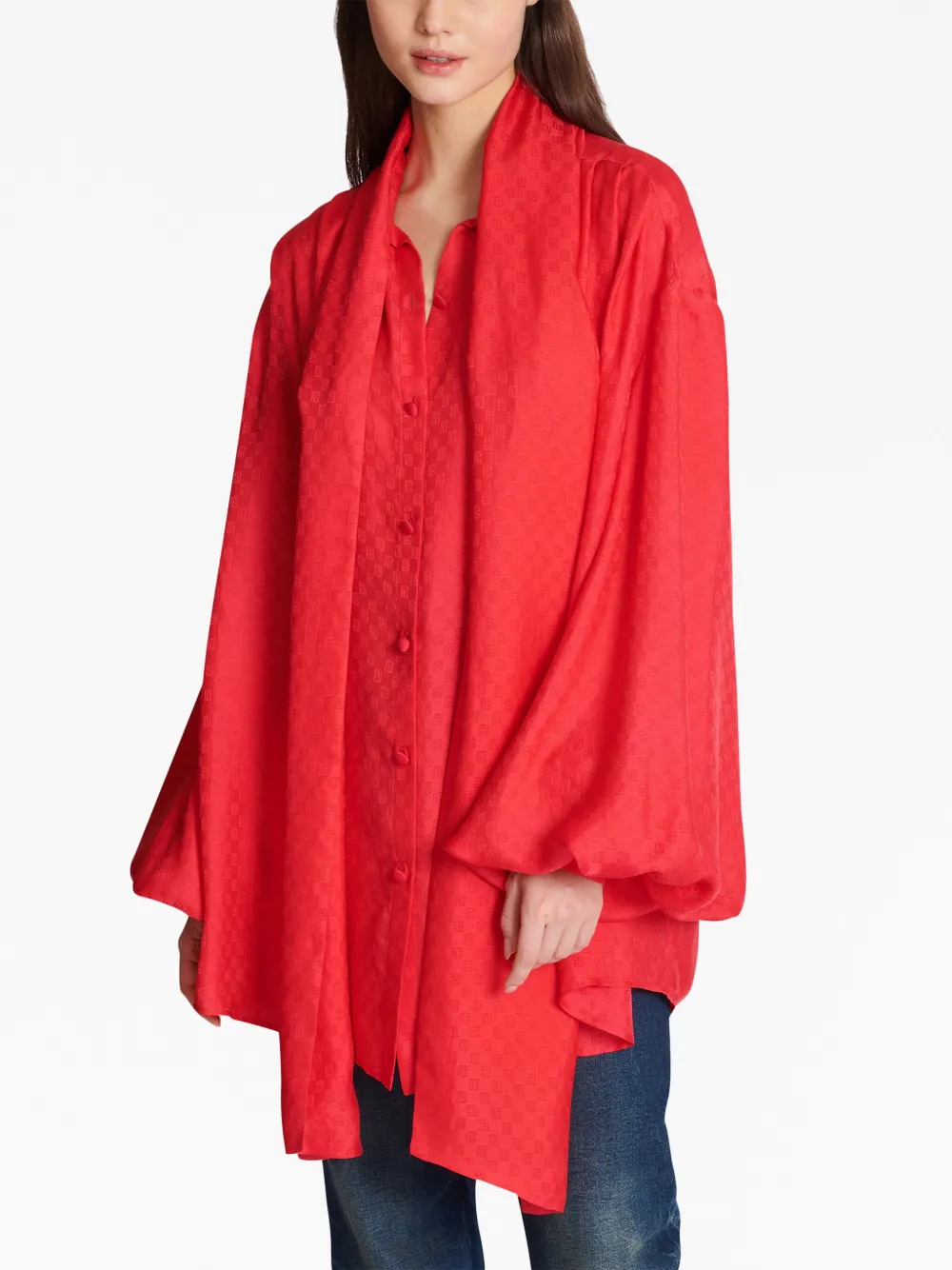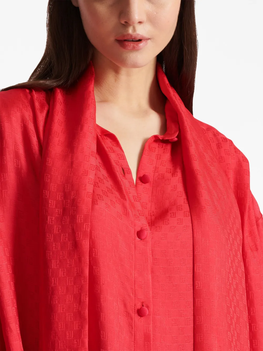 Шелковая рубашка с монограммой BALMAIN, красный