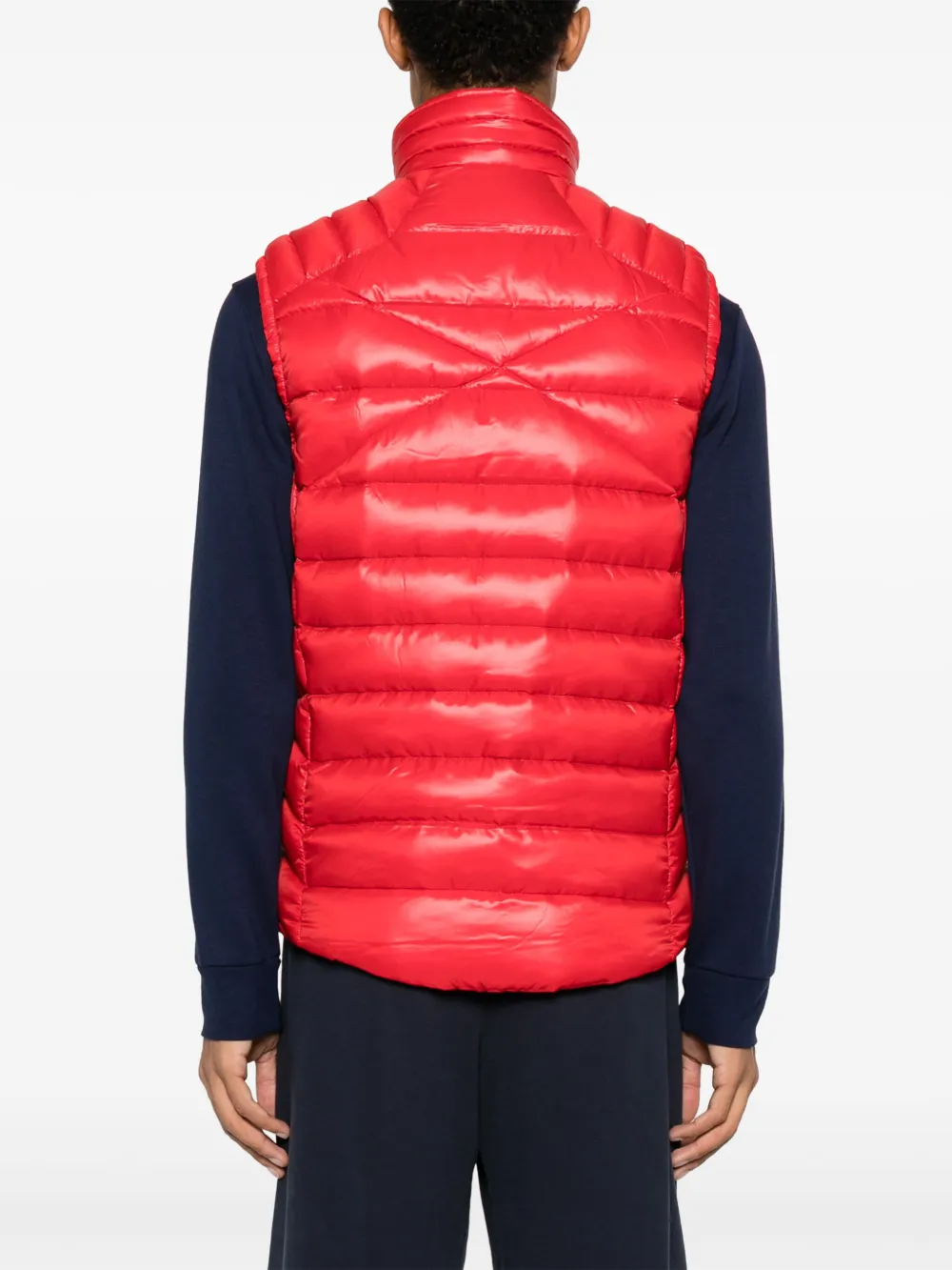 Подробнее о товаре: Ярко-красный, наполнитель из пуха и перьев, переработанный полиэстер, логотип спереди, дутый материал, стеганая модель, высокий воротник, застежка на молнии спереди, два кармана на молнии по бокам, без рукавов и прямой подол. Этот товар как минимум на 50% состоит из переработанных или повторно использованных материалов. Узнать больше о том, какие товары получают отметку «Ответственный выбор», можно из материала «Как мы оцениваем экологичность и этичность».