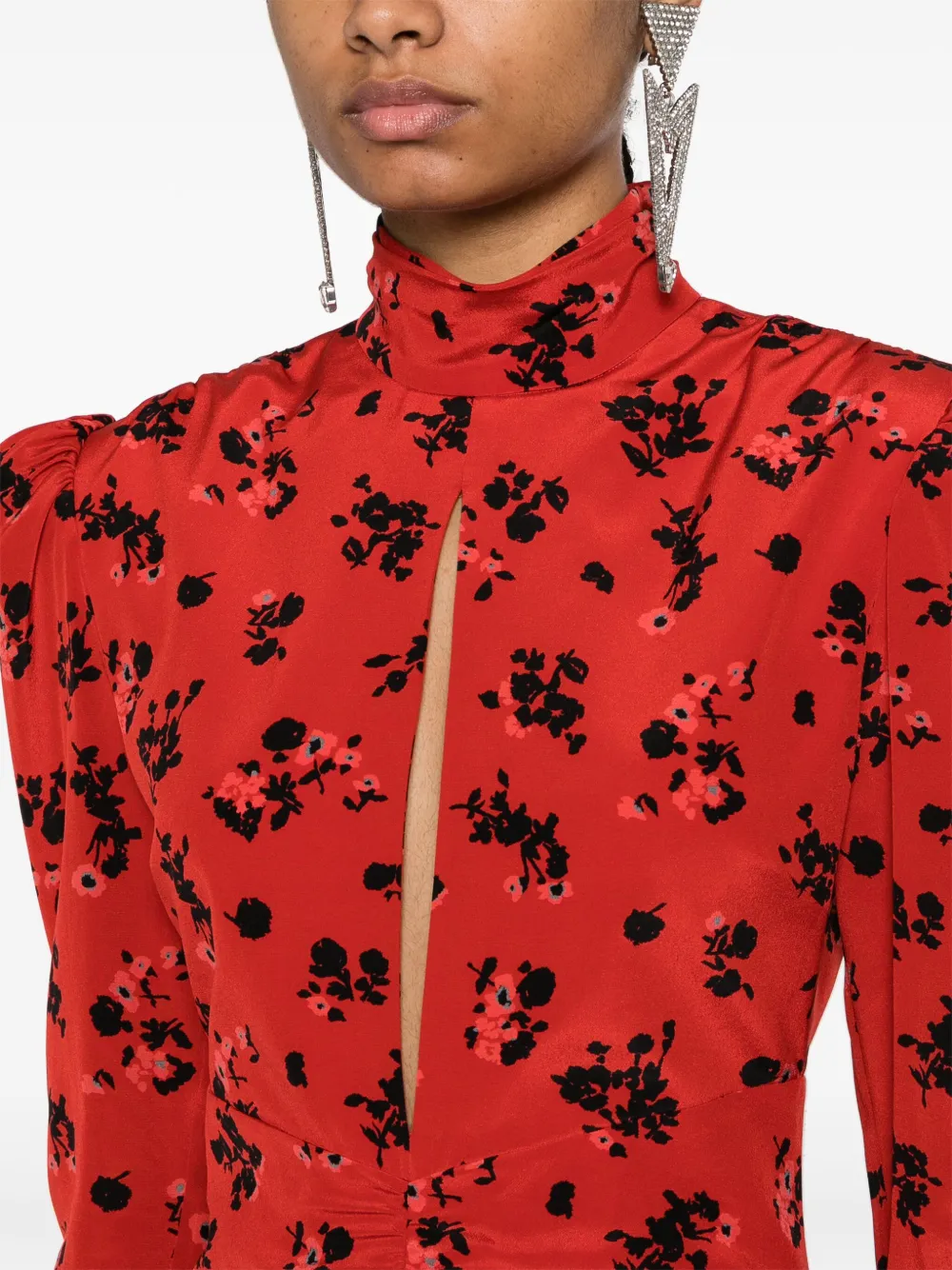 Шелковое платье мини с цветочным принтом Alessandra Rich, красный