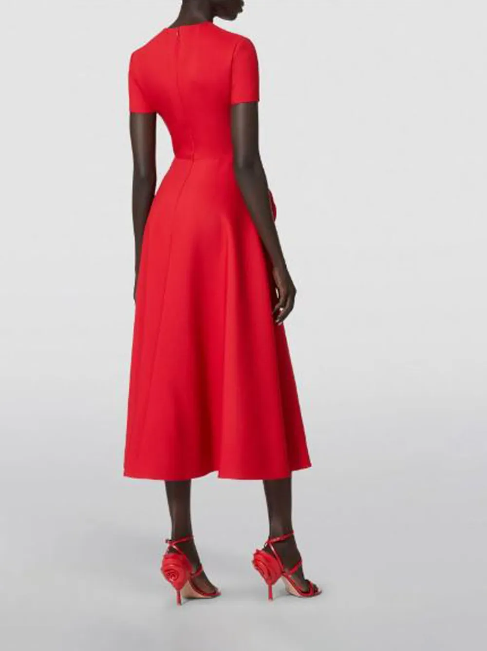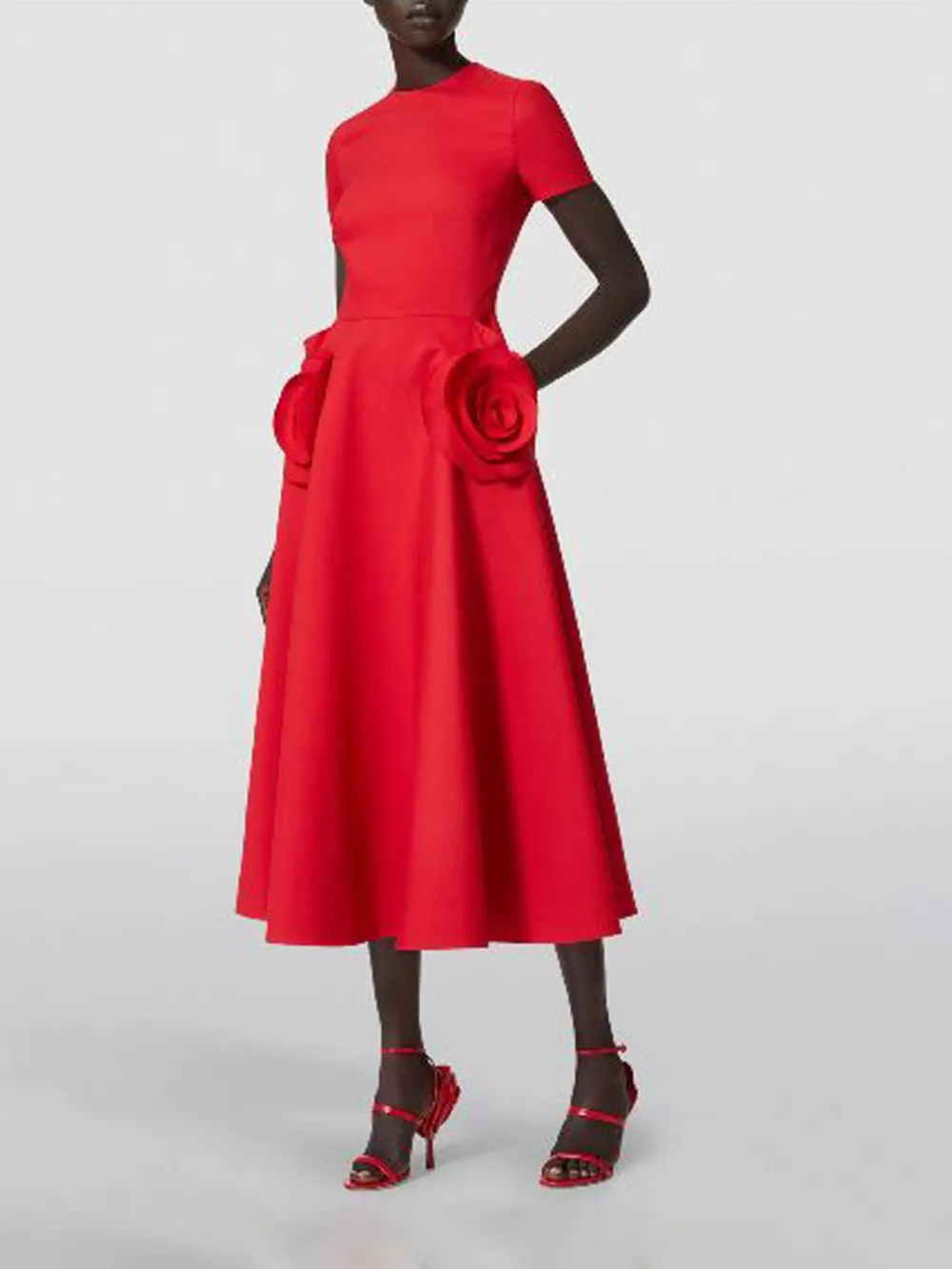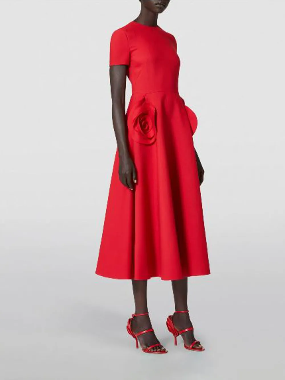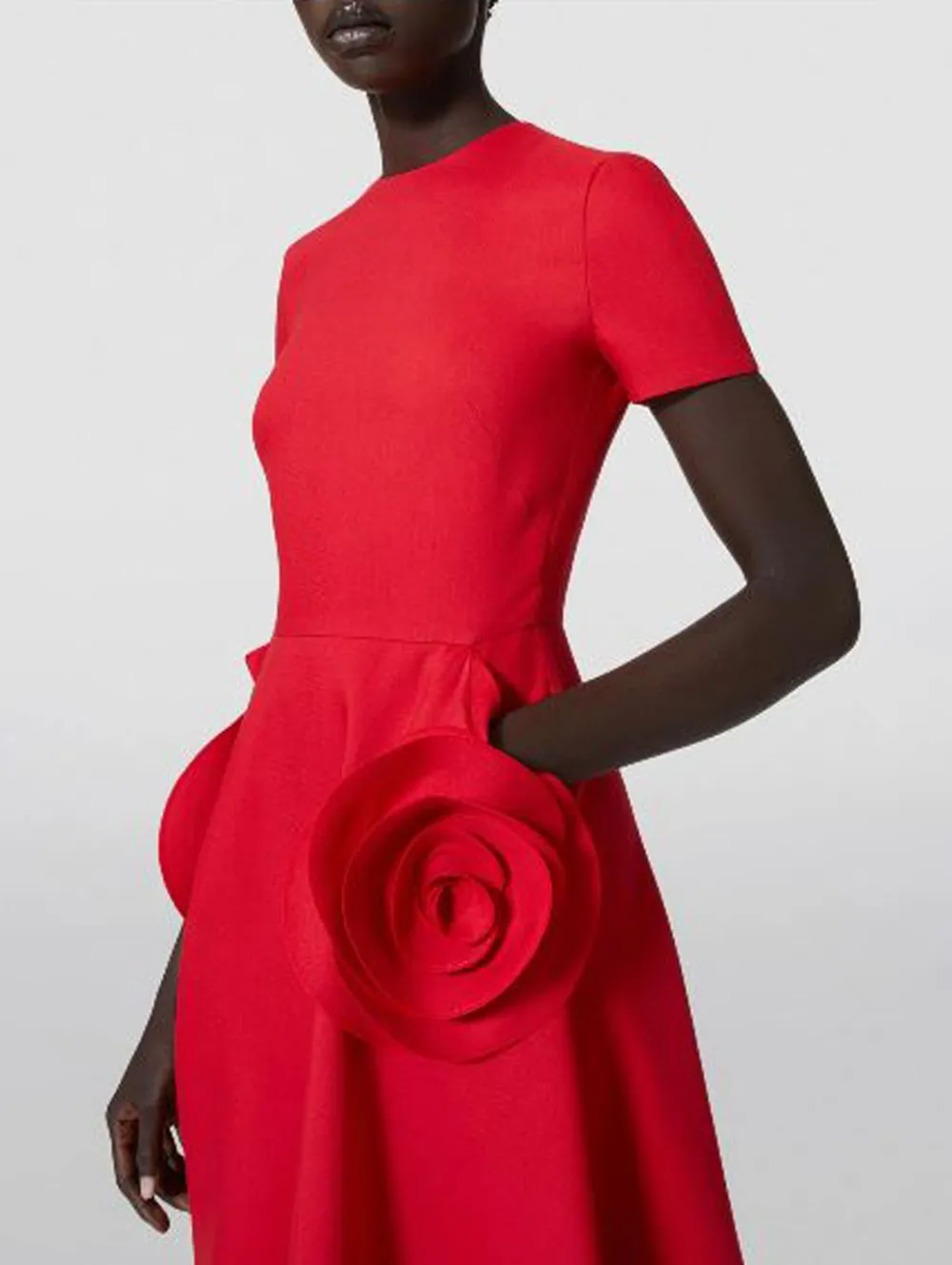 Valentino Garavani's roses are out in full force with this unique short-sleeve dress. The midi length and crew neck create a timeless elegance, while the large roses covering the side pockets add an interesting detail to an otherwise simple, understated design.Dry cleanZip fasteningCrew neckShort sleeves
