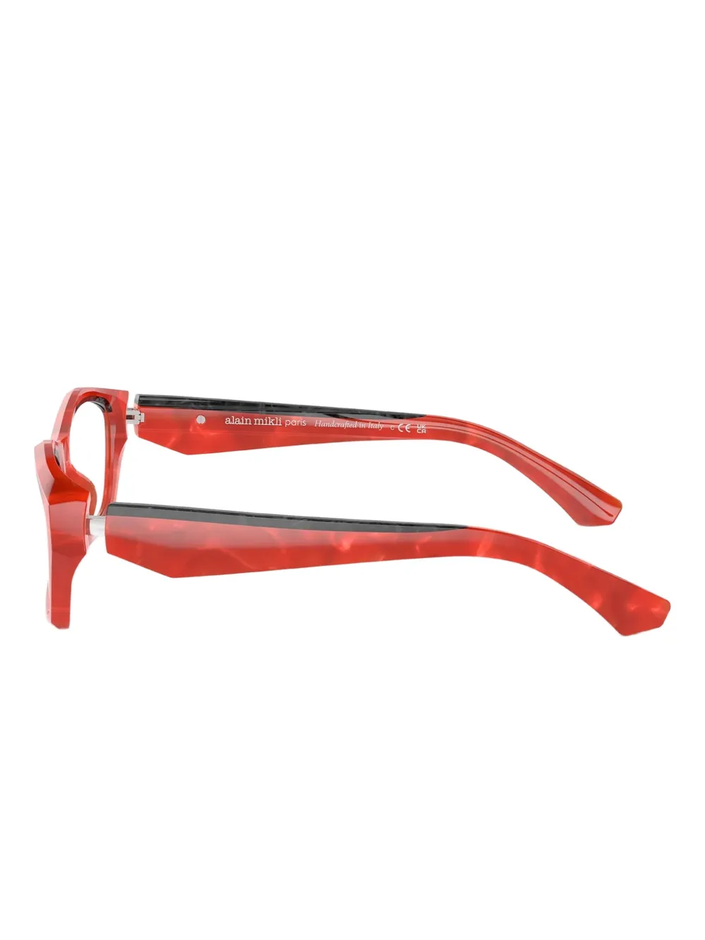 Красная геометрическая оправа, черные детали на дужках, прозрачные линзы. Эти очки поставляются с защитным футляром. Все очки FARFETCH продаются в оправах без диоптрий.