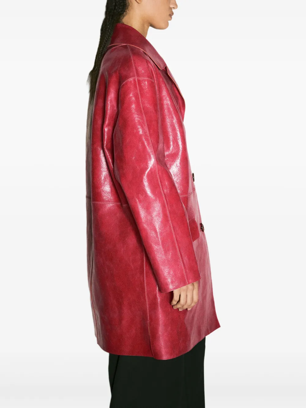 Кожаное пальто на пуговицах Prada, красный
