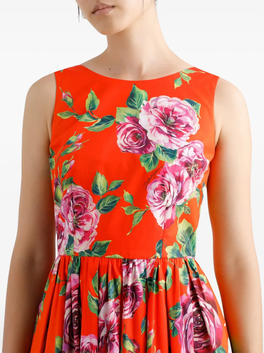 Платье миди с цветочным принтом DOLCE & GABBANA, красный