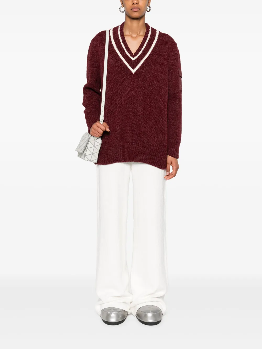 Свитер с V-образным вырезом MONCLER, красный 77 880₽