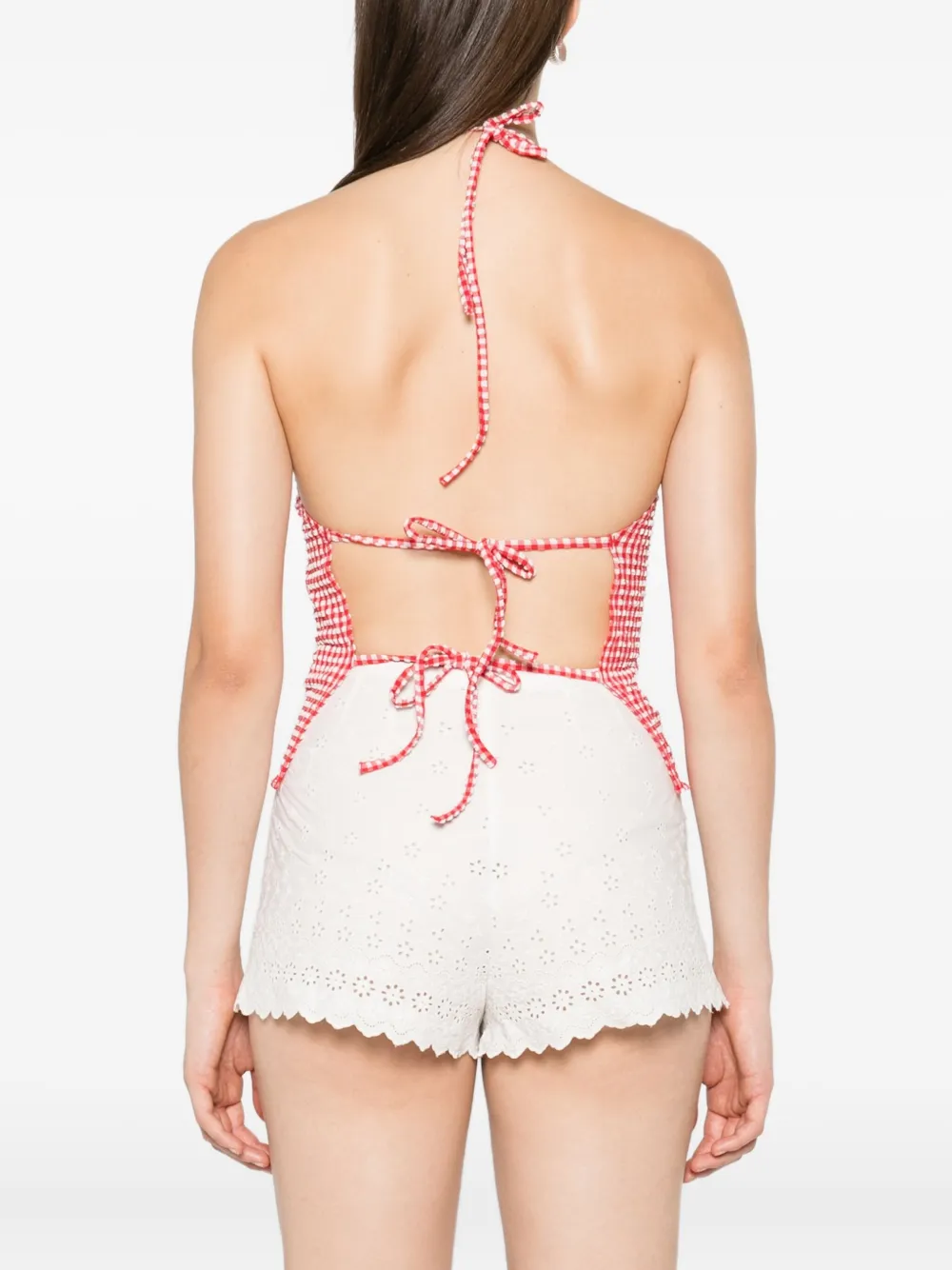 Клетчатый топ с вырезом халтер Hunza G, красный