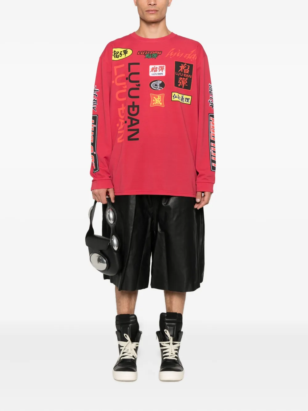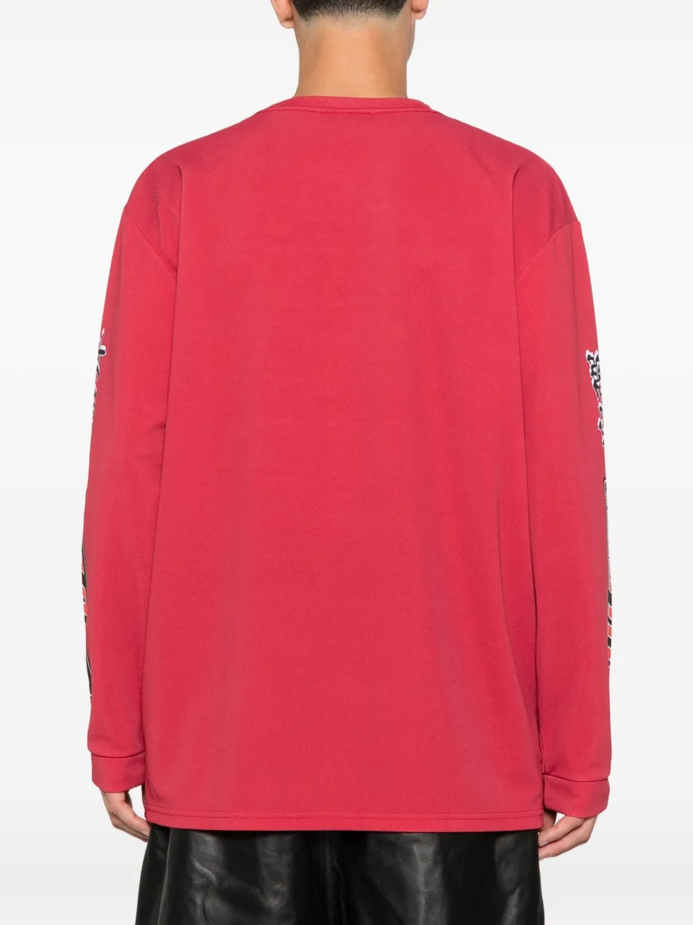 Красный, с длинными рукавами, круглым вырезом, графическим принтом, несколькими нашивками с логотипом, текстовым принтом