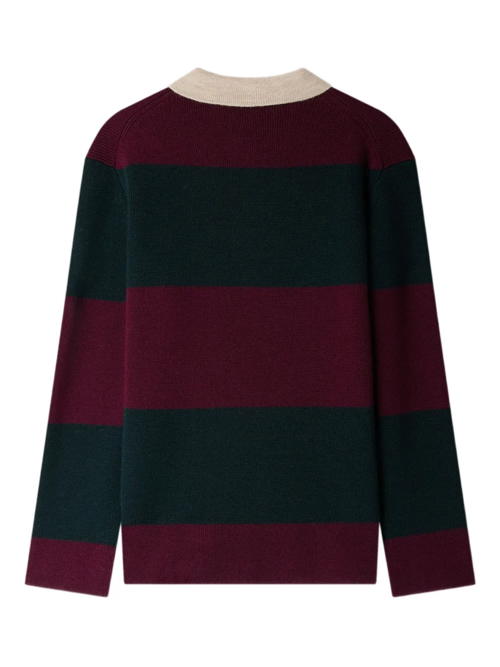 Бордовый, горизонтальные полосы, воротник-поло, длинные рукава, застежка на пуговицы, шерсть