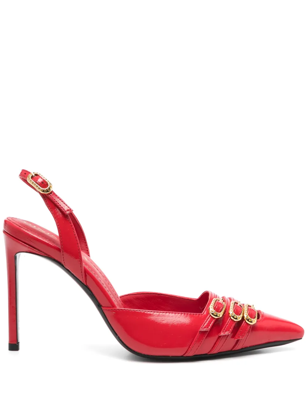 Застежка на пряжке кардинально-красного цвета, ремешок на пятке, фирменная стелька, декоративная пряжка, вырезы