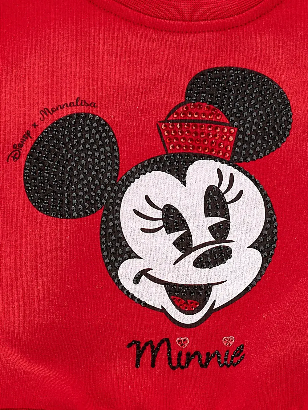 Красный круглый вырез, мультяшный принт, украшение из стразов, длинные рукава