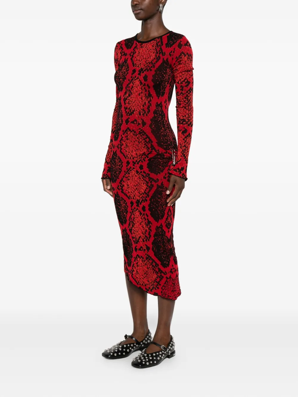 Платье миди со змеиным принтом The Attico, красный
