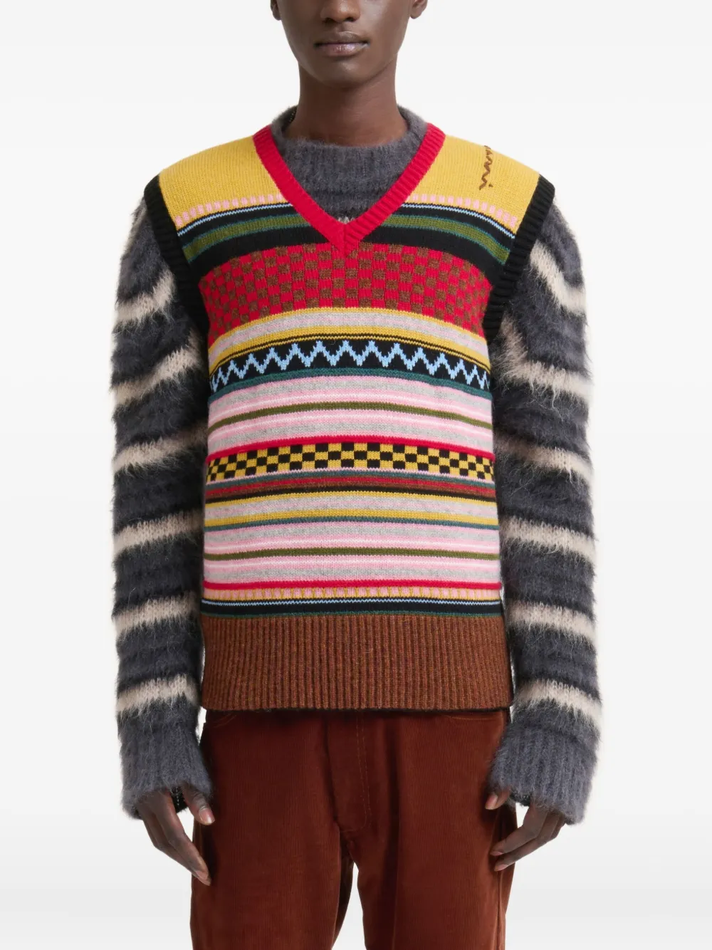 Шерстяной топ в полоску Marni, красный
