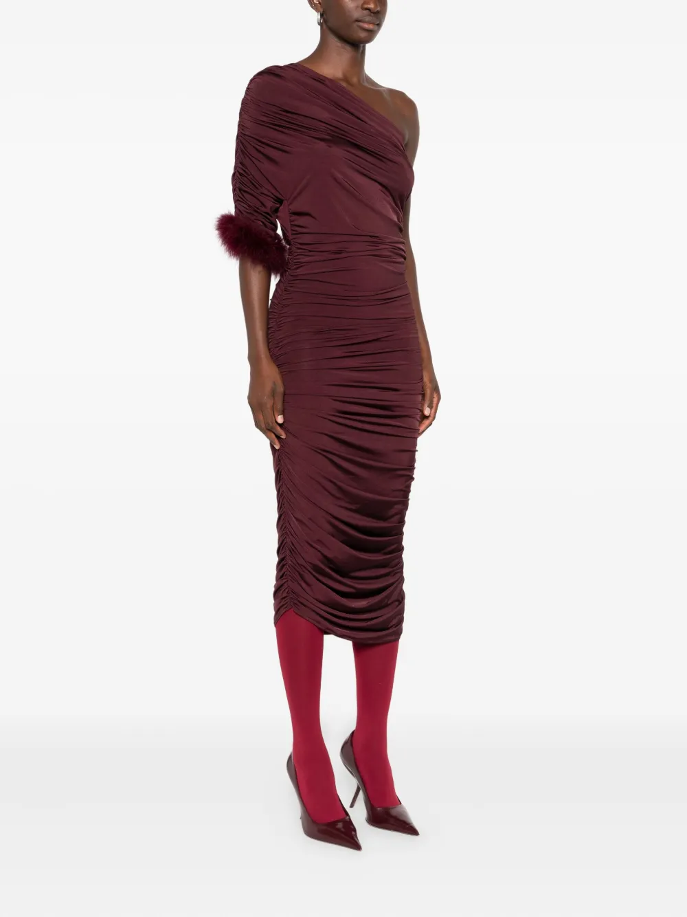 Платье на одно плечо с отделкой из перьев Mugler, красный