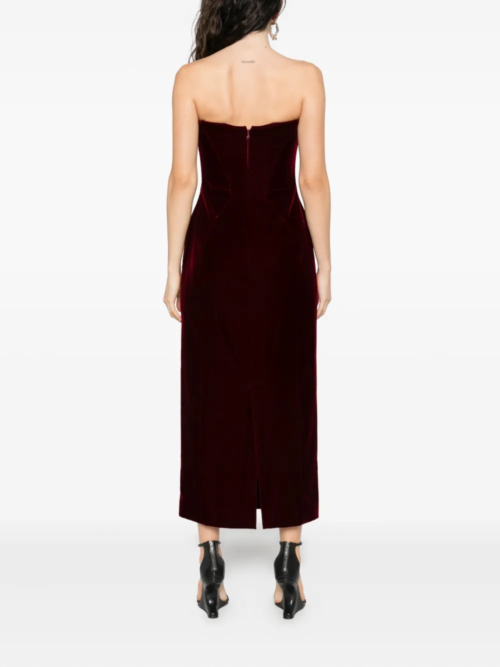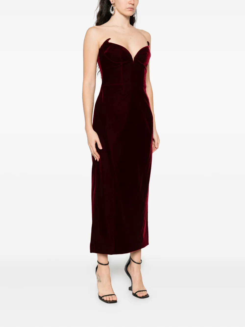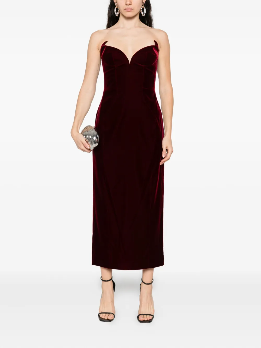 Бархатное платье миди без бретелек Mugler, красный 144 184₽