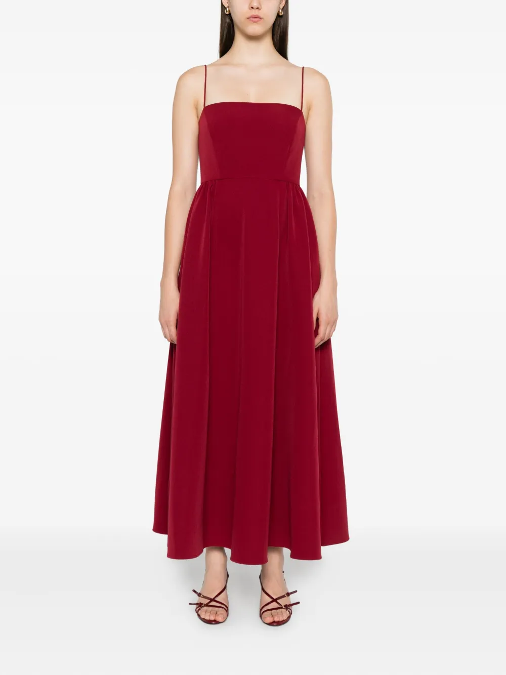 Темно-красная юбка А-силуэта с квадратным вырезом, без рукавов, приталенный лиф, завязывающийся пояс