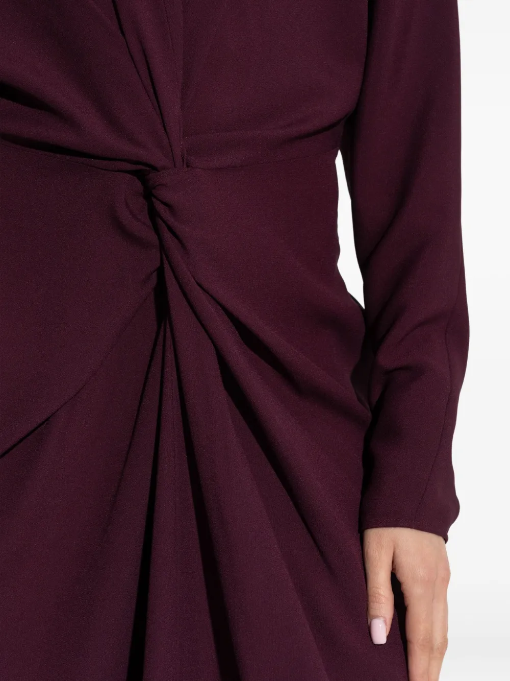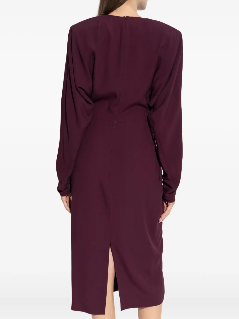 Бордовые, скрученные спереди подплечники, длинные рукава, круглый вырез, шлица по центру сзади