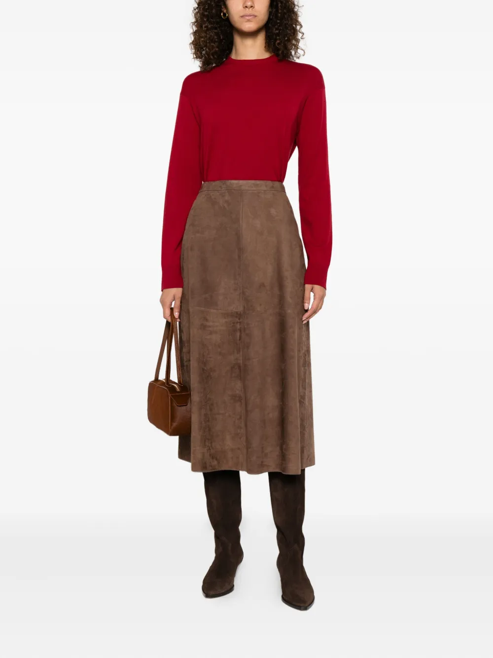 Красная шерсть, круглый вырез, длинные рукава, ребристые манжеты, прямой подол