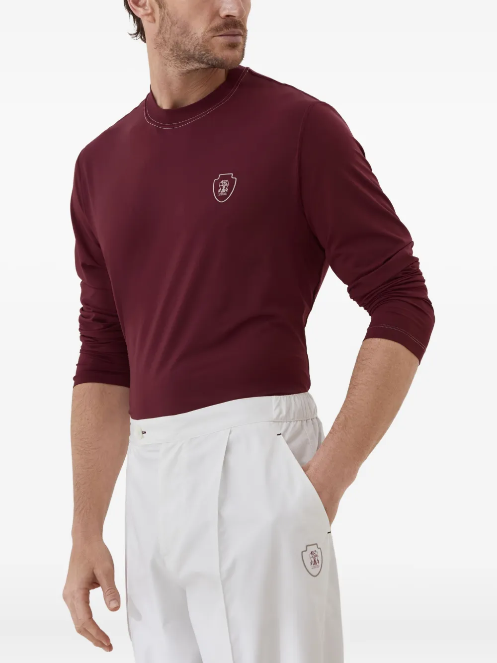 Лонгслив с вышитым логотипом Brunello Cucinelli, красный