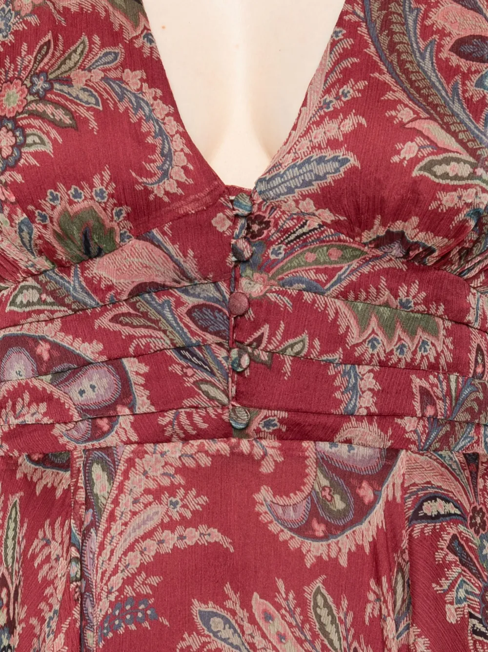 Темно-красный узор пейсли, V-образный вырез, длинные рукава, застежка на пуговицы