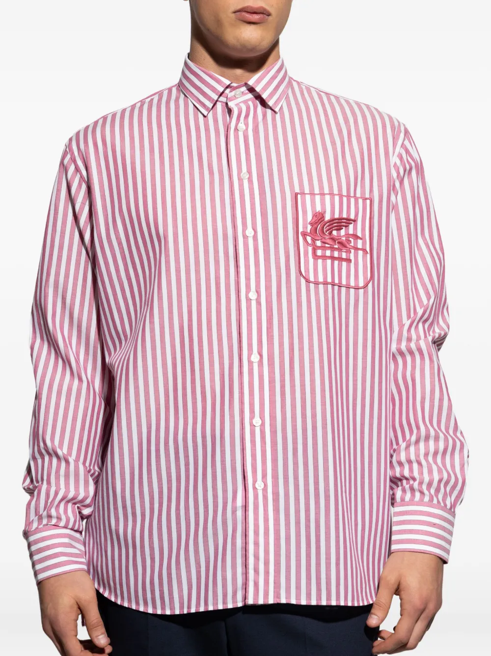 Рубашка в полоску с вышитым логотипом ETRO, красный