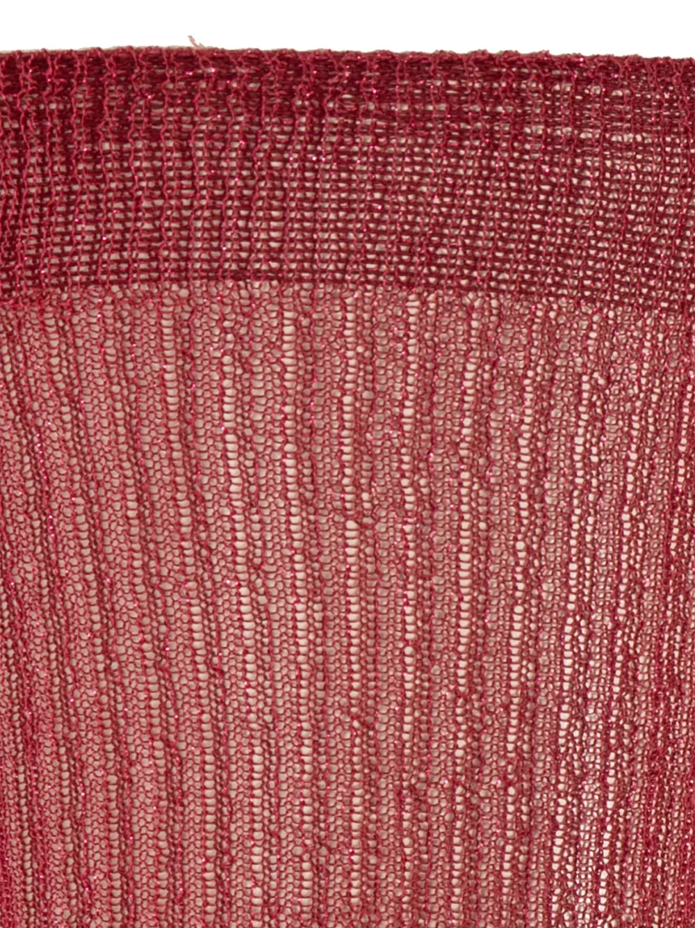 Красный трикотаж в рубчик, прозрачная ткань с металлическим блеском, длина до щиколотки