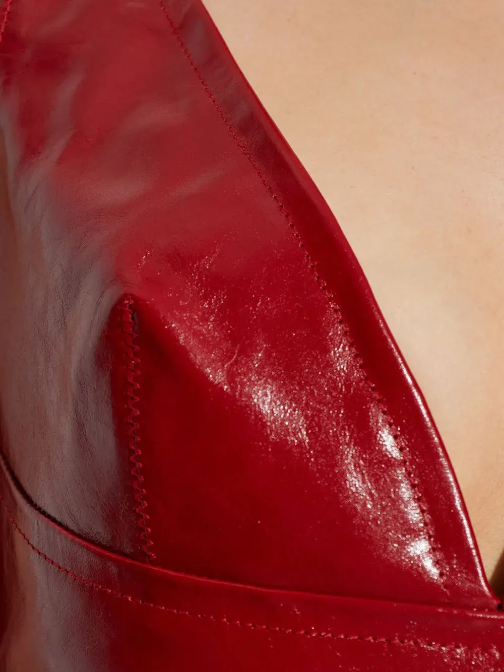 Красная безрукавка с V-образным вырезом, застежка-молния, серебристая фурнитура