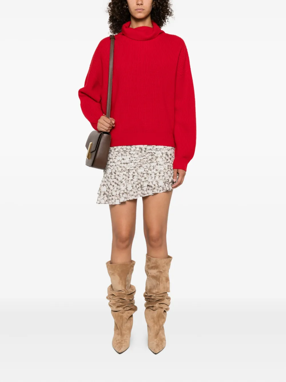Свитер в рубчик с высоким воротником ISABEL MARANT, красный