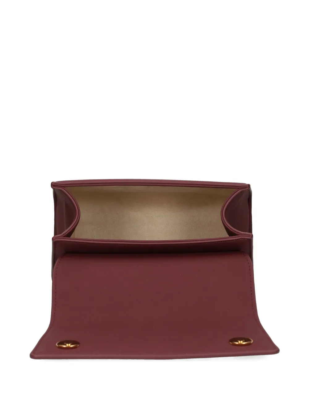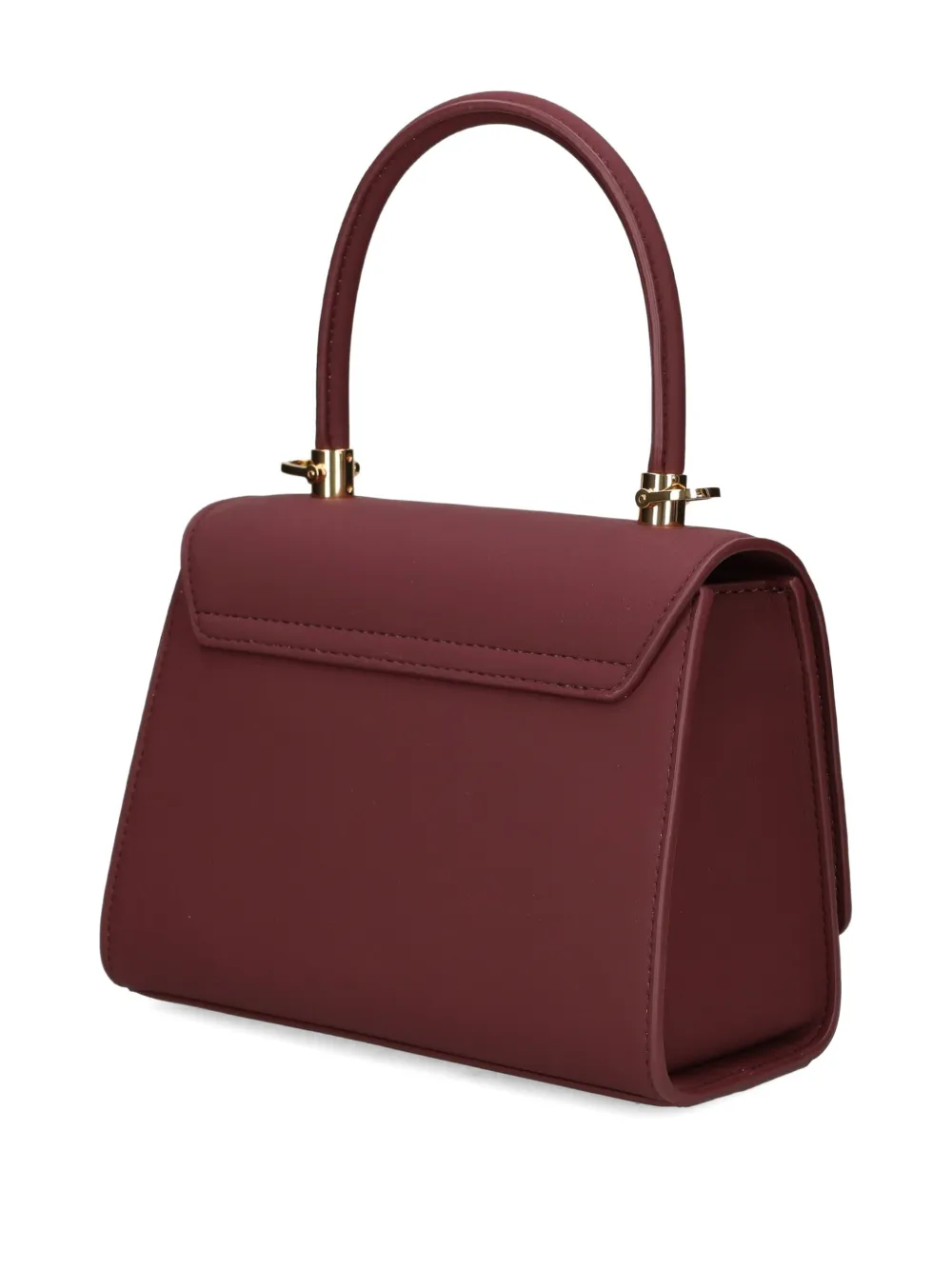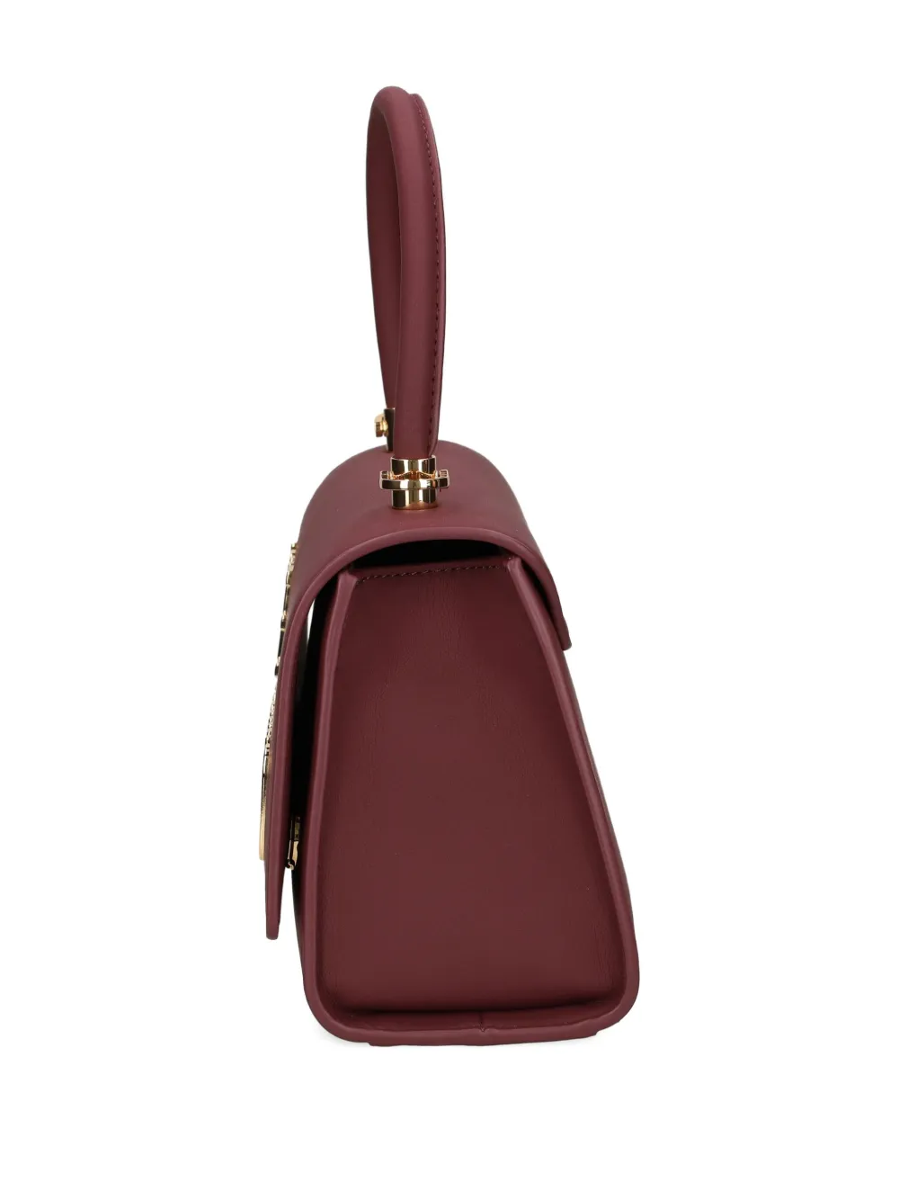 Красная табличка с логотипом, золотистая фурнитура, верхняя ручка, застежка-клапан