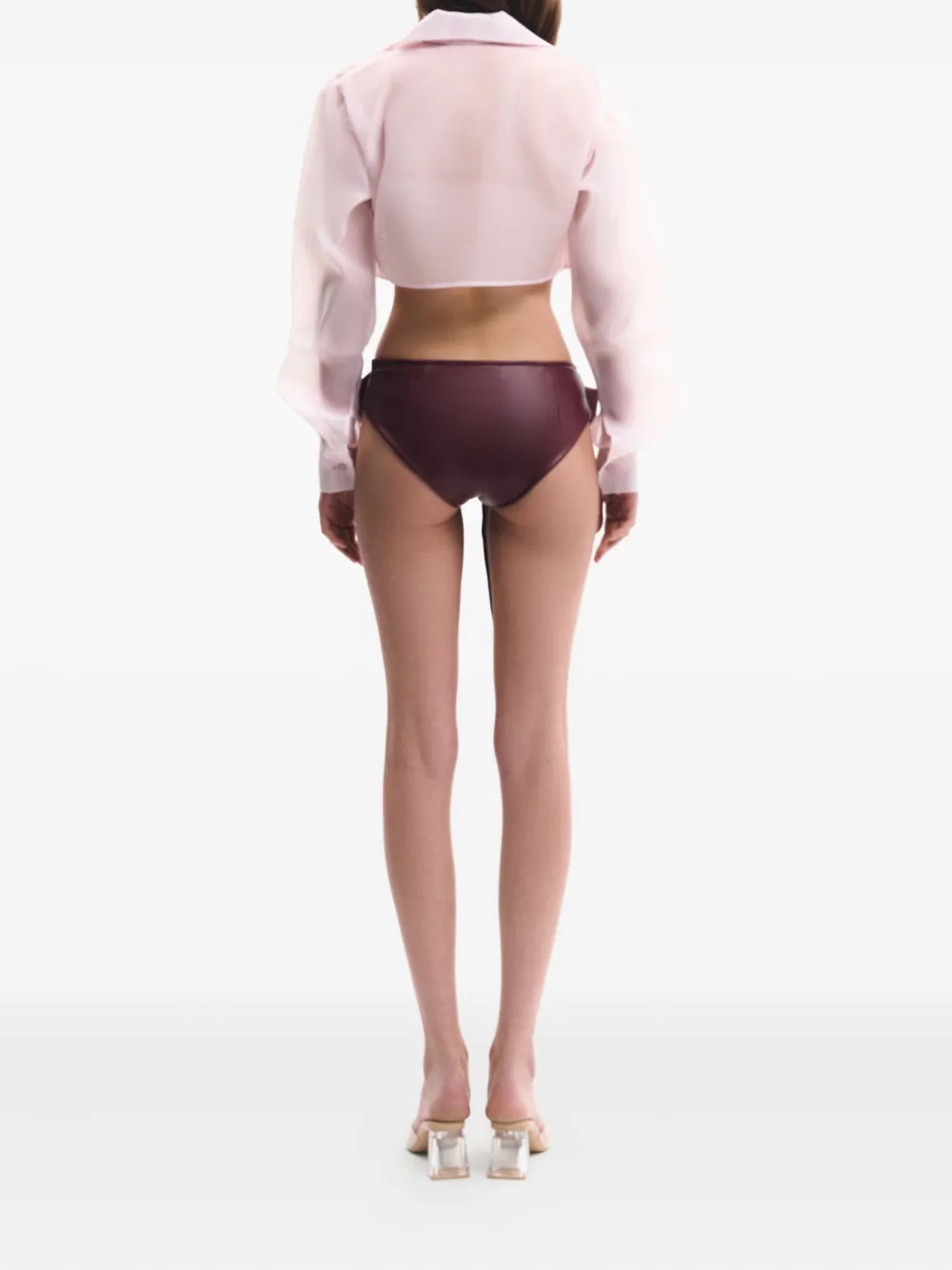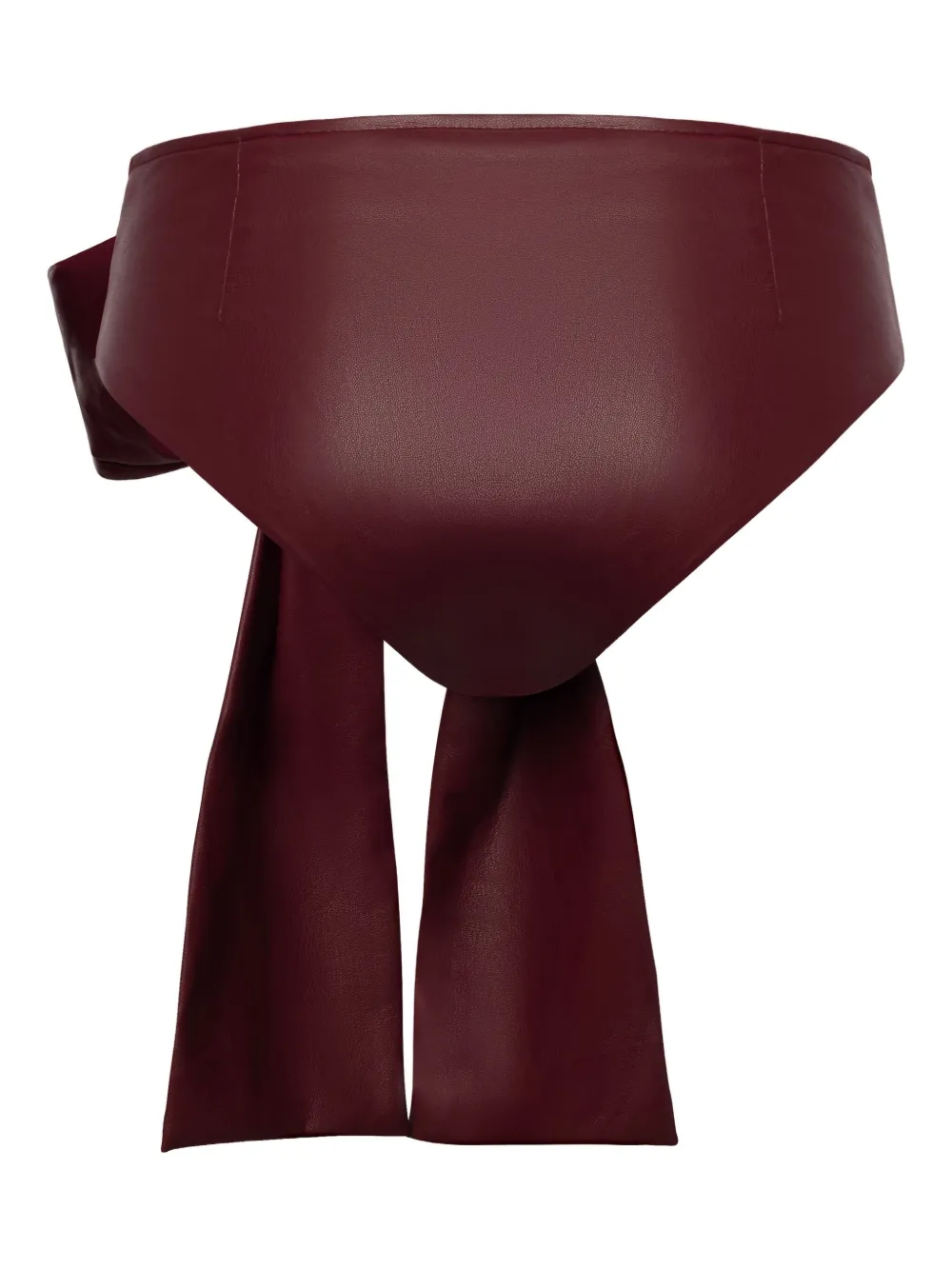 Бордовый кожаный бант с высокой талией и длиной до бедра