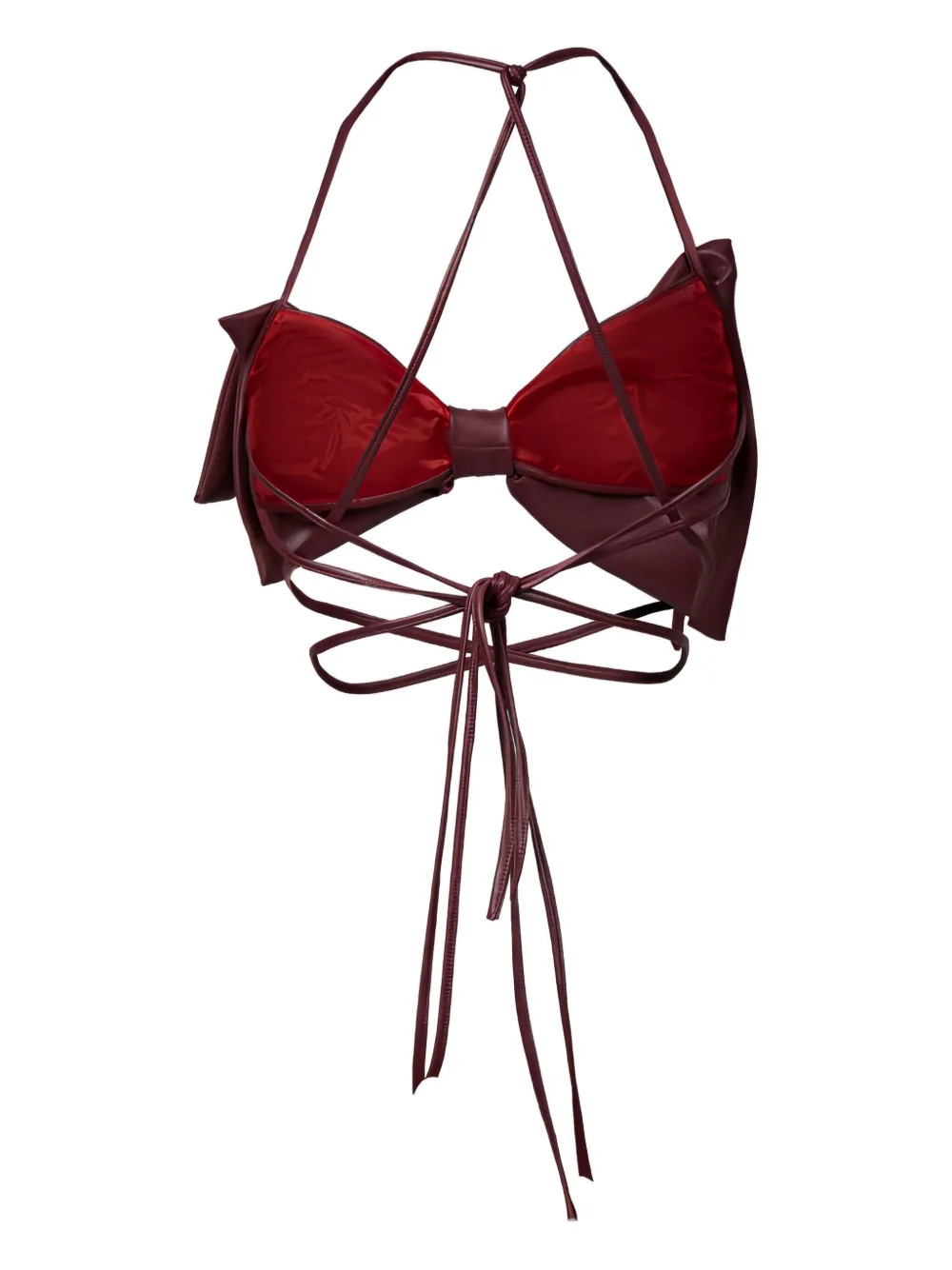 Бордовый бант, шнуровка на спине, асимметричный дизайн, драпированная ткань, халтер-воротник