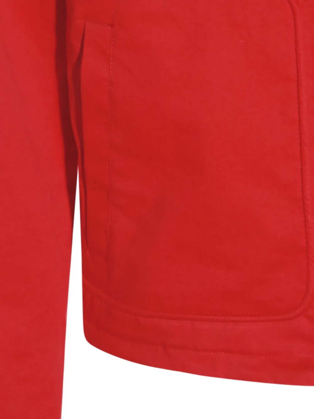 Красная застежка-молния, вышитый логотип, прорезные карманы, воротник-поло, длинные рукава