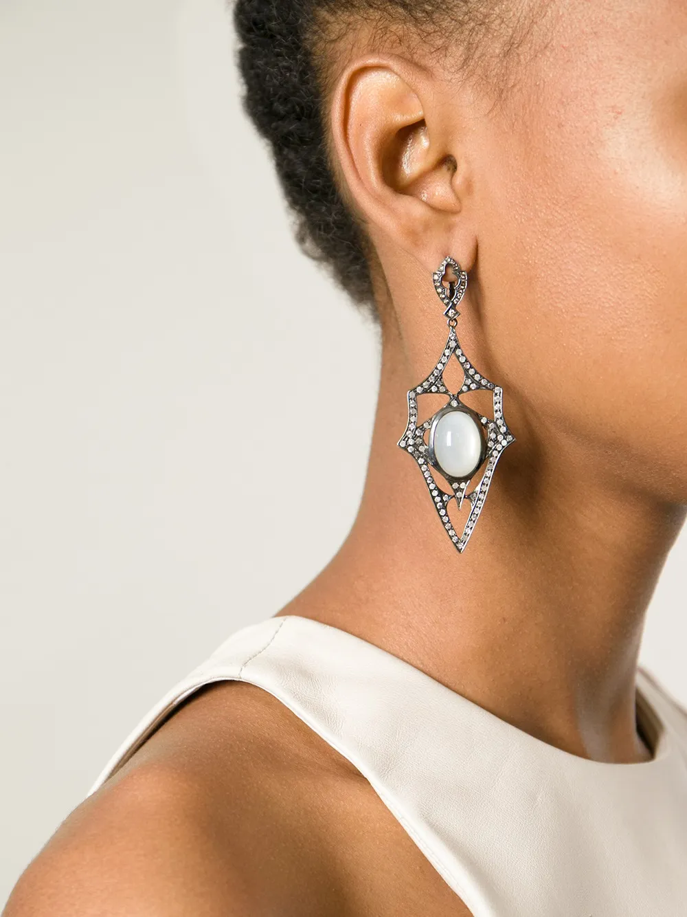 Золотые серьги Kaleidescope с бриллиантами от Loree Rodkin. Лунный камень 18 карат и серые бриллианты. Цвет: золотые.