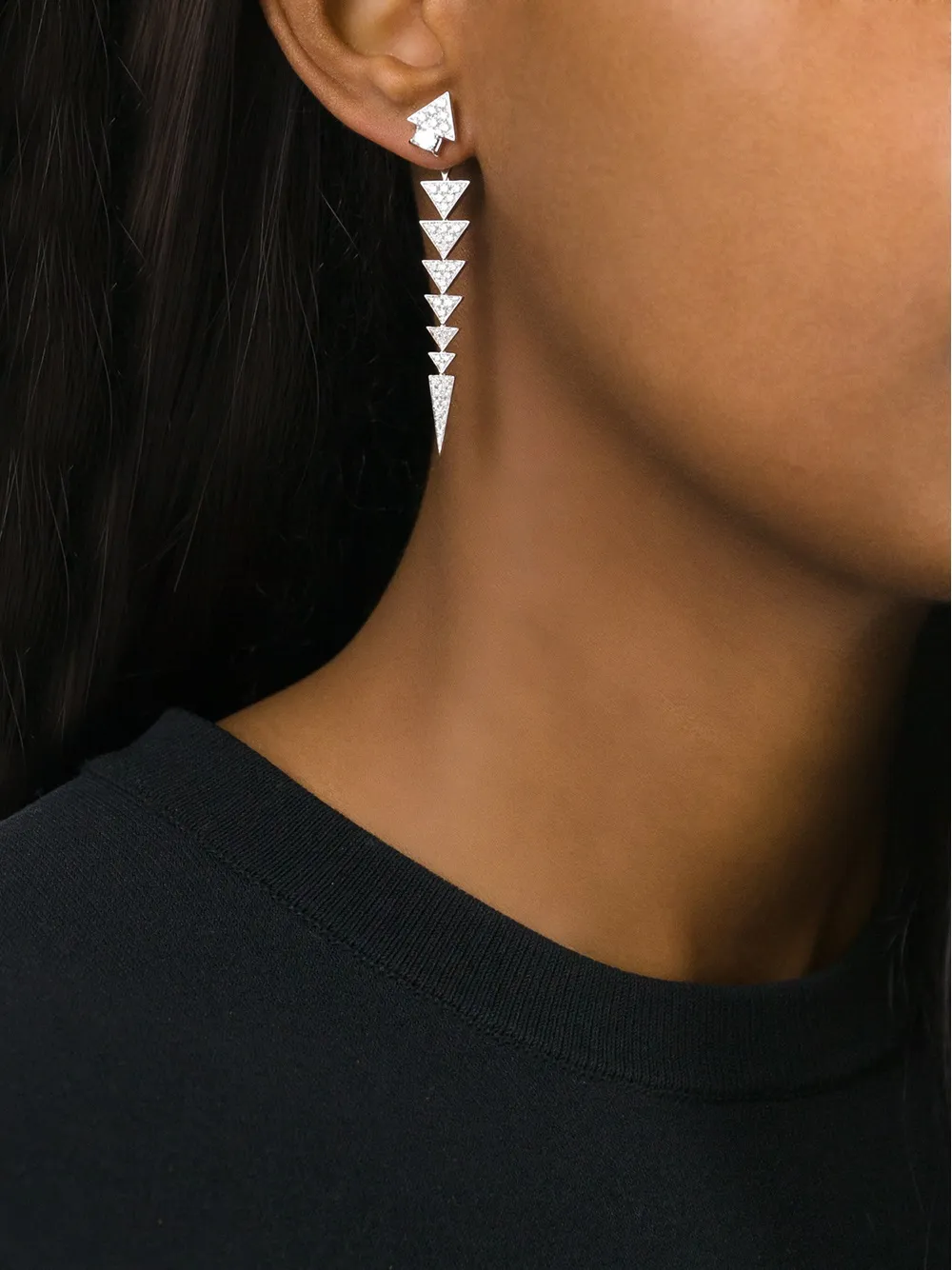Золотые серьги-подвески от Nikos Koulis. Застежка-гвоздик, покрыто бриллиантами .