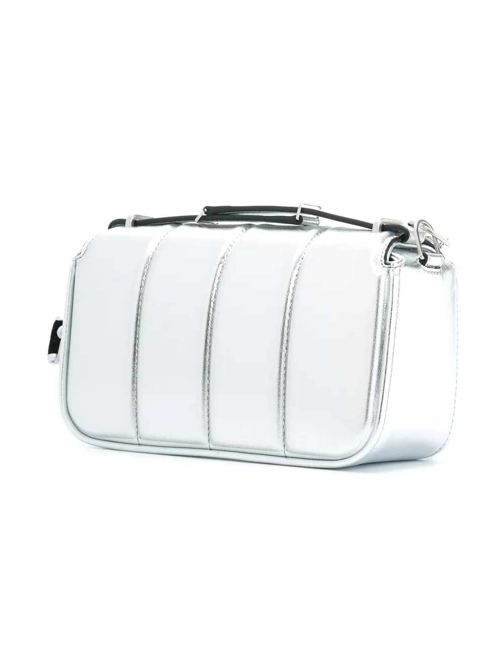 Серебристая кожано-бархатная сумка на плечо в форме лапы от Marco De Vincenzo.