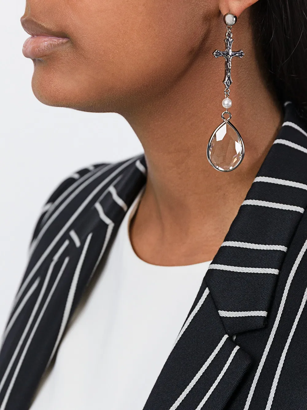 Серебристые серьги-подвески с крестами от Givenchy(Живанши).
