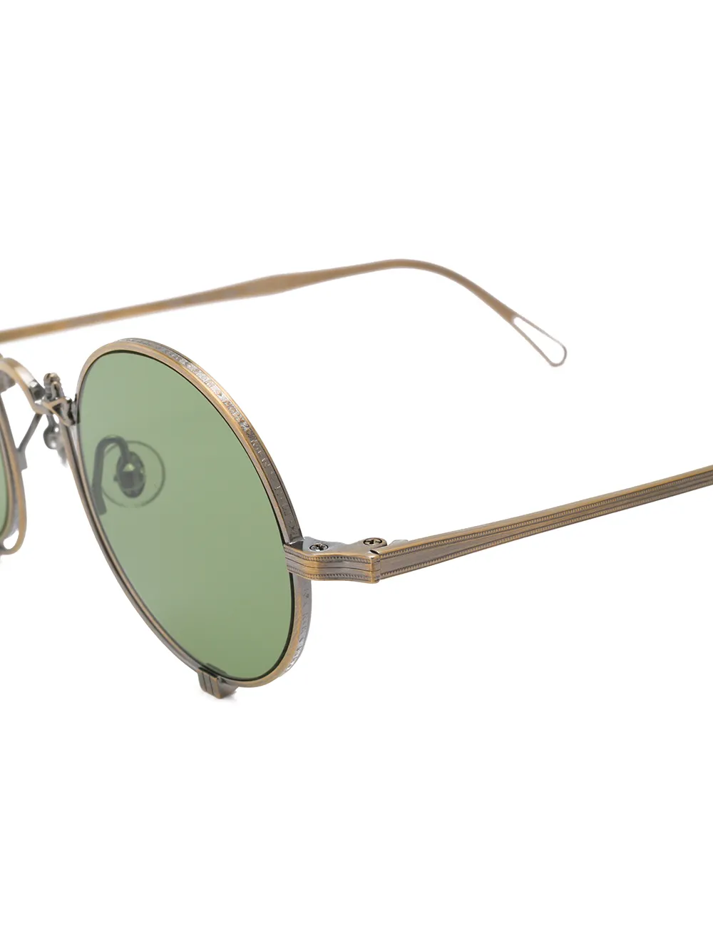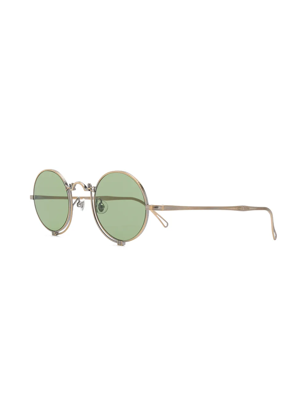 Золотистые титановые солнцезащитные очки в круглой оправе от Matsuda. Прилагается защитный чехол.