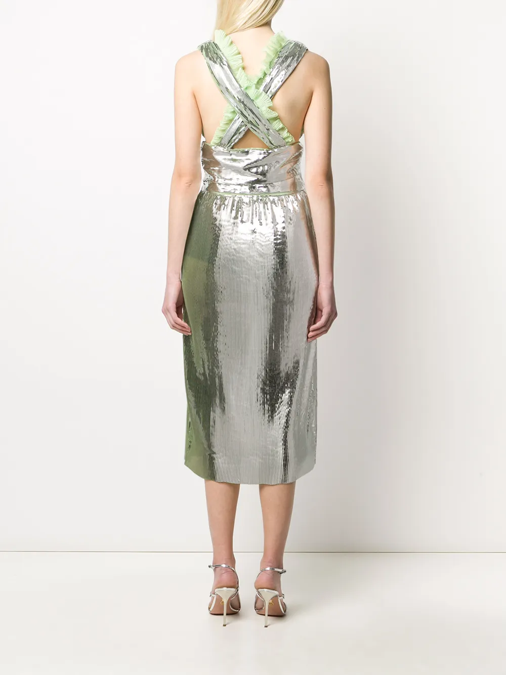 Платье миди с оборками Marco De Vincenzo, металлик