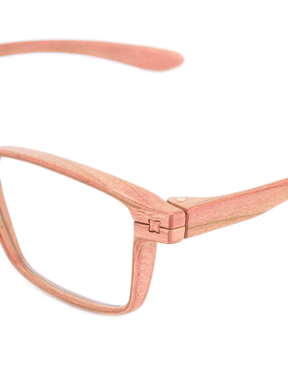 Бежевые деревянные очки в квадратной оправе от herrlicht. Прилагается защитный чехол.