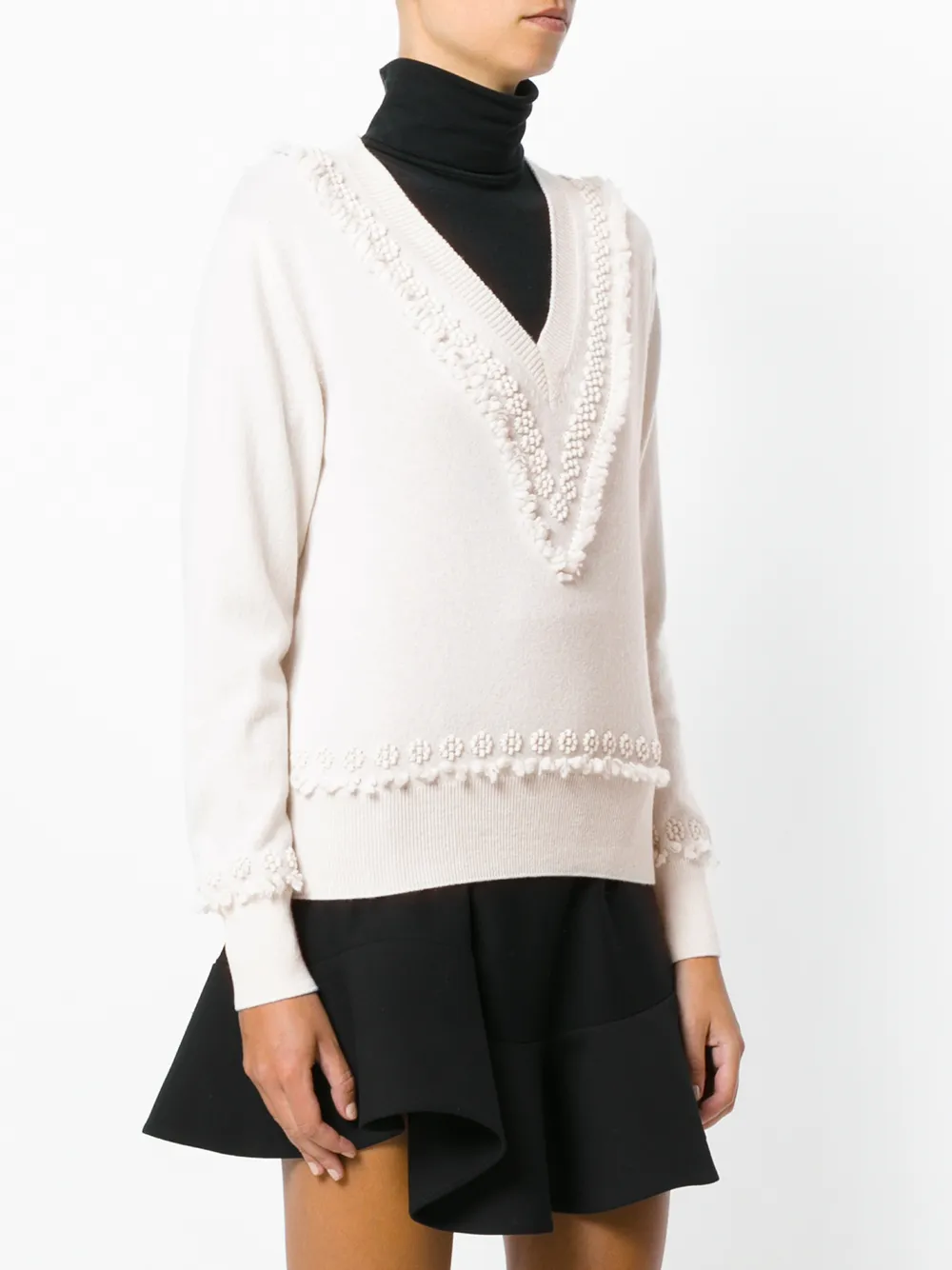 Белый кашемировый текстурный свитер с V-образным вырезом от Barrie.