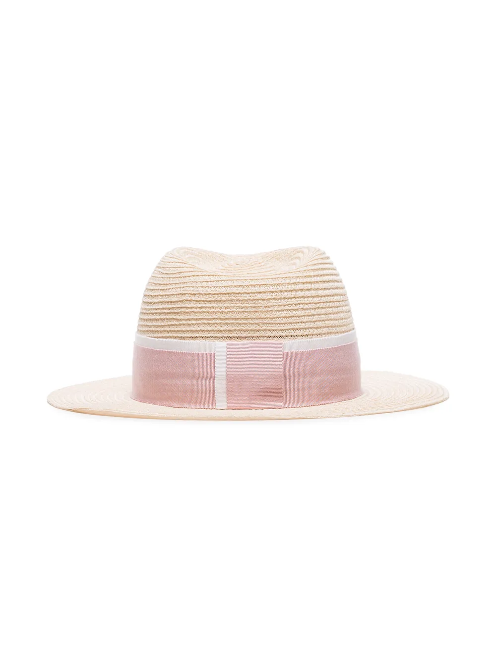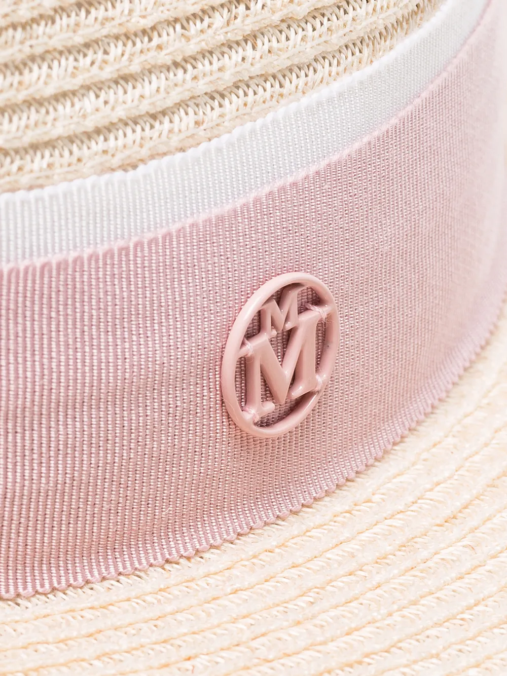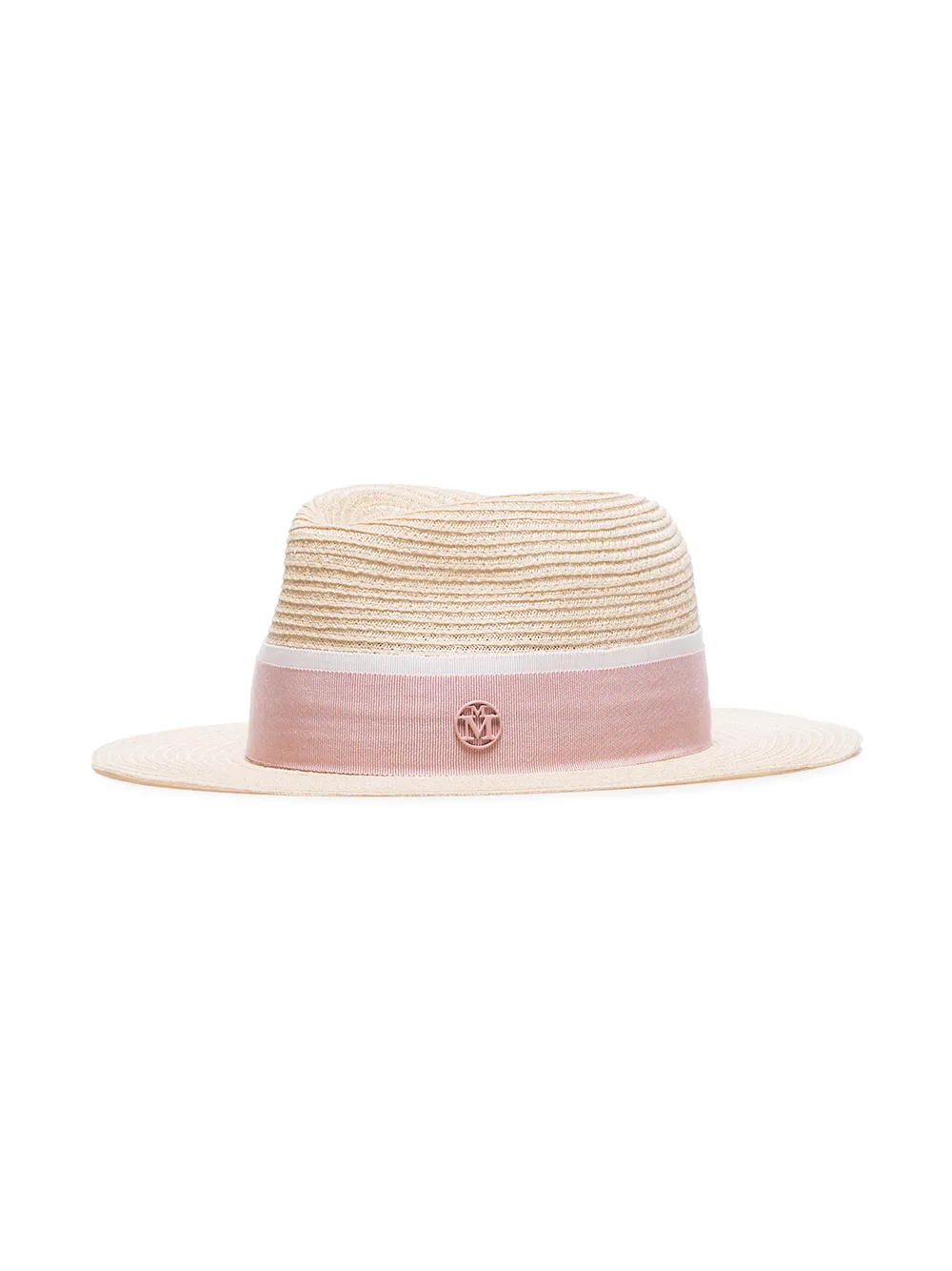 innovation and traditional craftsmanship are at the helm of French milliner Maison Michel. The hat-maker tops it all off with their signature ‘M’ moniker. This pink straw hat from Maison Michel features a pink and white grosgrain headband with logo detail and a ribbed design.
