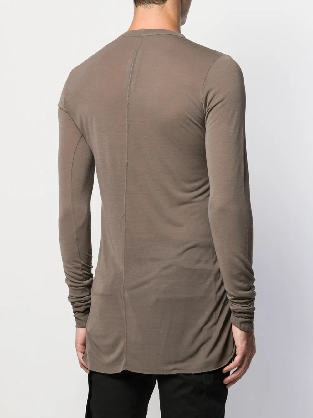 Длинный свитер от Rick Owens (Рик Оуэнс). Круглый вырез под горло, неровный необработанный подол, длинные рукава и удлиненная модель. Цвет: серый.
