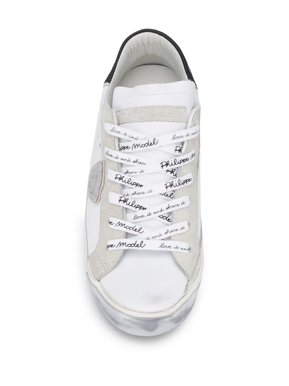 Кроссовки Paris X от Philippe Model. Закругленный носок, шнуровка спереди, фирменная стелька и белая резиновая подошва.