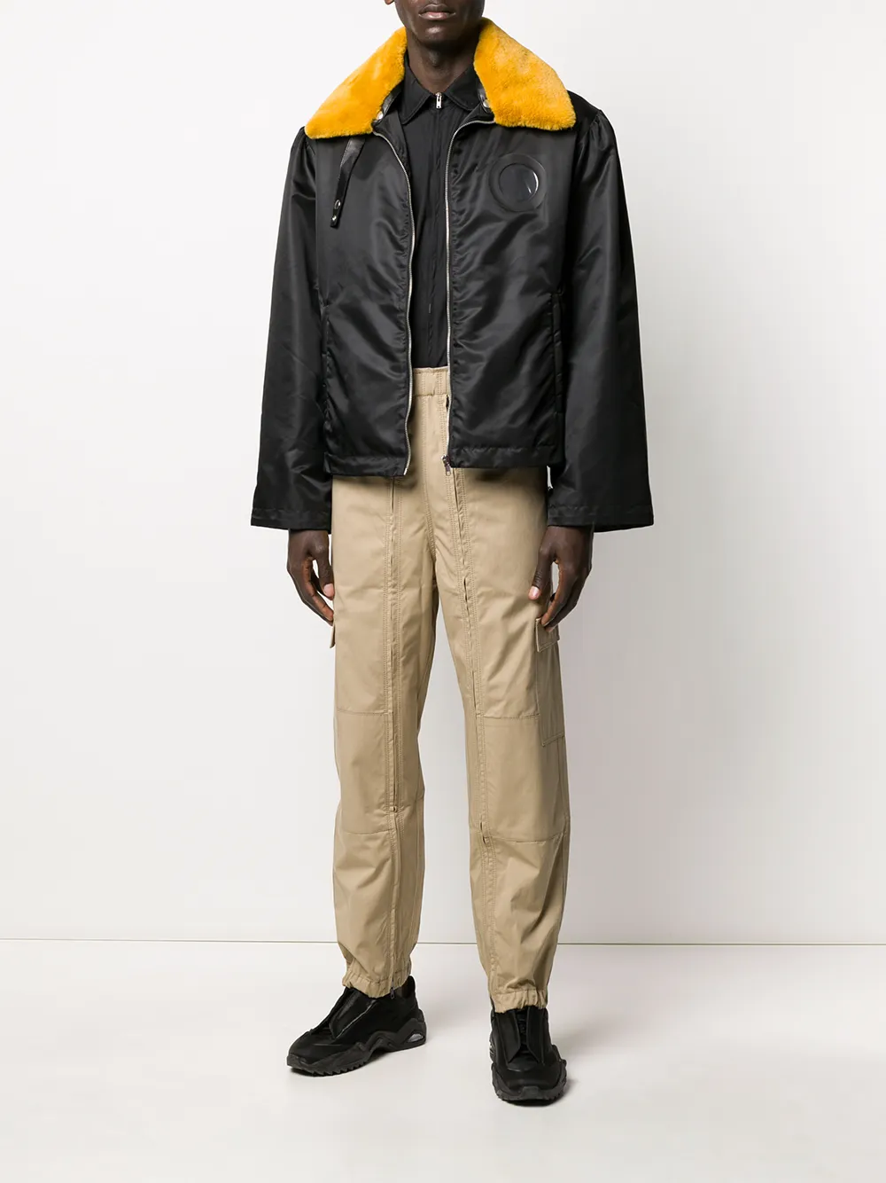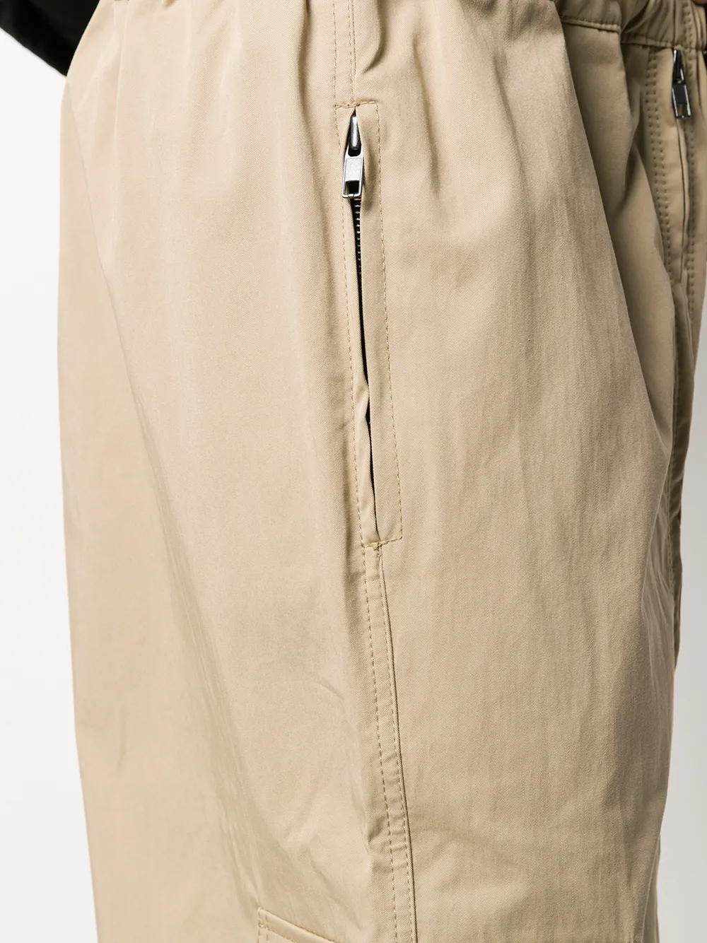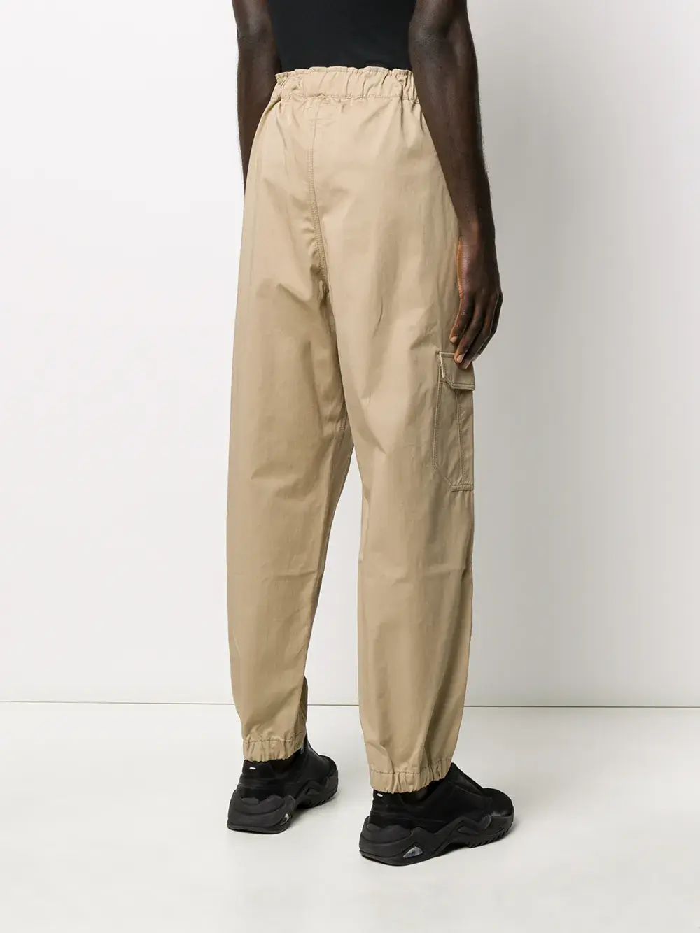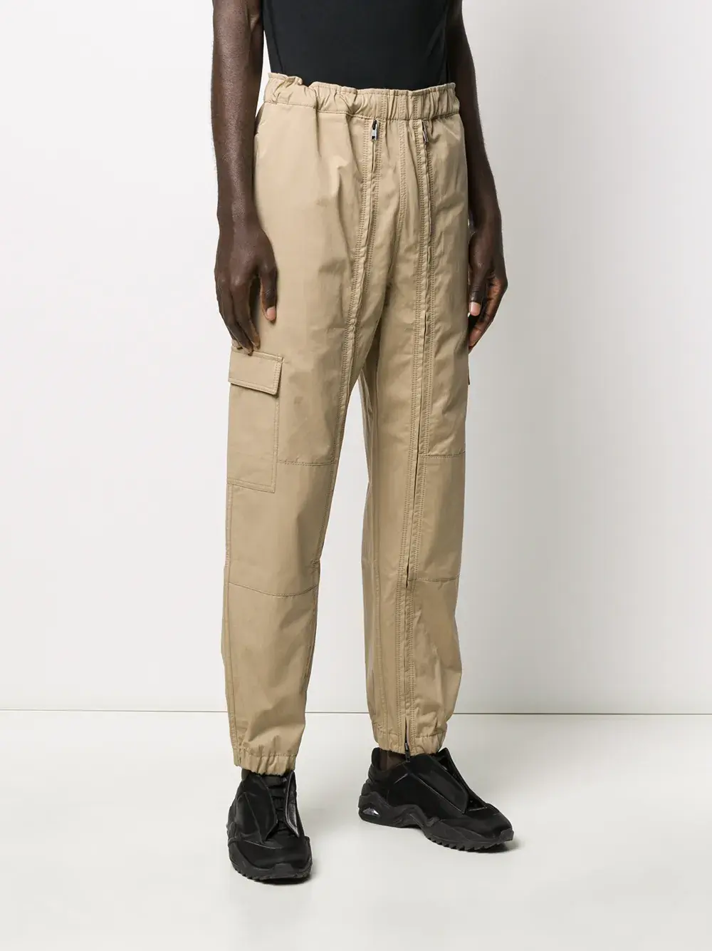 Брюки карго на молнии от Random Identities. Фактурная модель, широкие брючины, стандартная длина, эластичный пояс и застежка на молнии.