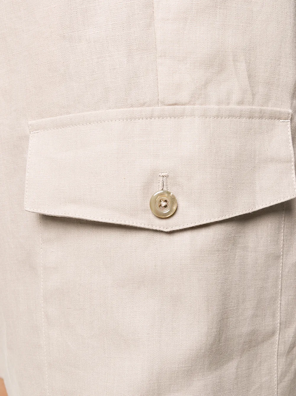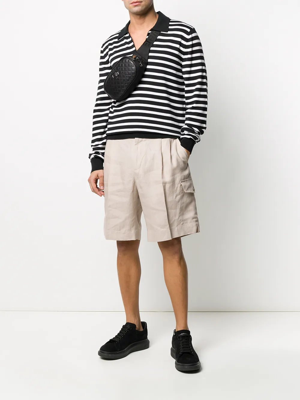 Бежевый всегда в моде. В коллекцию Dolce & Gabbana (Дольче энд Габбана) весна-лето 2020 вошли бежевые шорты-бермуды из льна с карманами карго. Средняя посадка, петли для ремня, застежка на пуговице и молнии, прорезные карманы по бокам, два задних прорезных кармана на пуговицах, карманы карго сбоку и длина по колено. POSITIVELY CONSCIOUS: Как минимум 50% основного материала, из которого сделан этот товар, отвечает нашим критериям экологичности. В состав входят органические или переработанные материалы и ткани, которые признаны более экологичными (лен, рами, тенсел и т.д.)