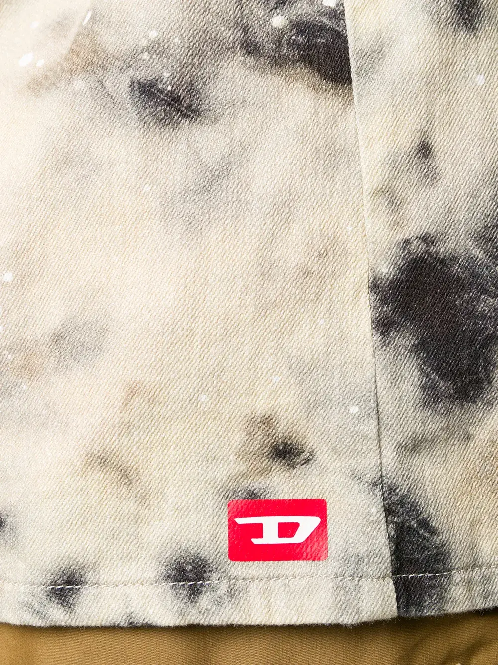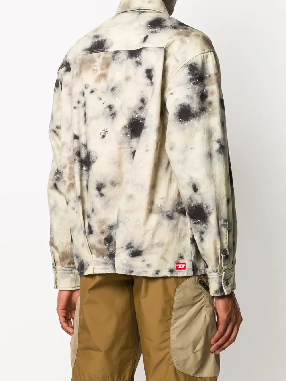 Рубашка с принтом от Diesel Red Tag. Сплошной узор, классический воротник, застежка на кнопках, длинные рукава, манжеты на пуговицах, нагрудный карман и прямой подол.