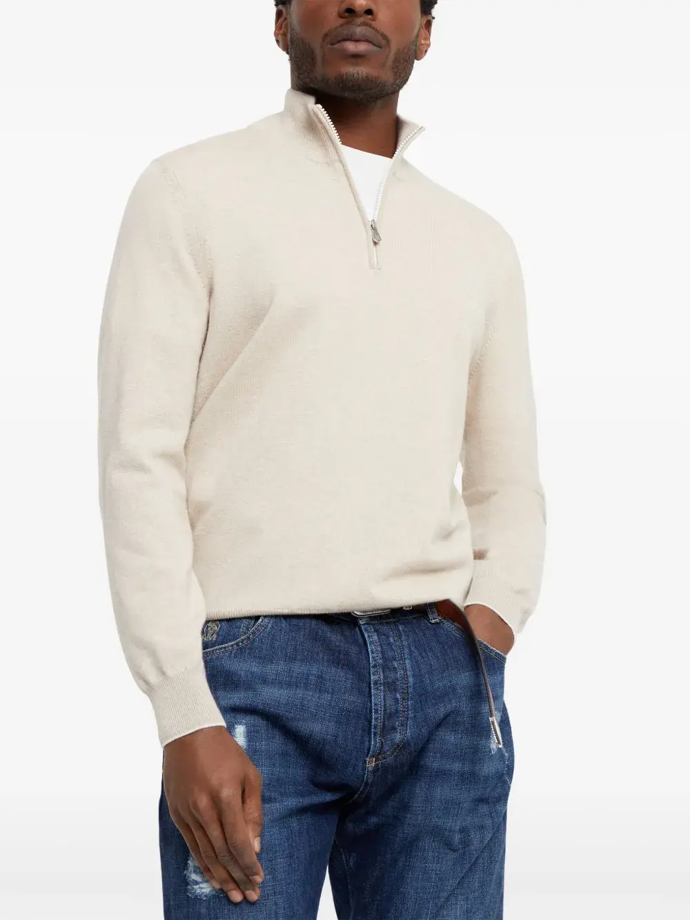 Джемпер с молнией Brunello Cucinelli, нейтральный
